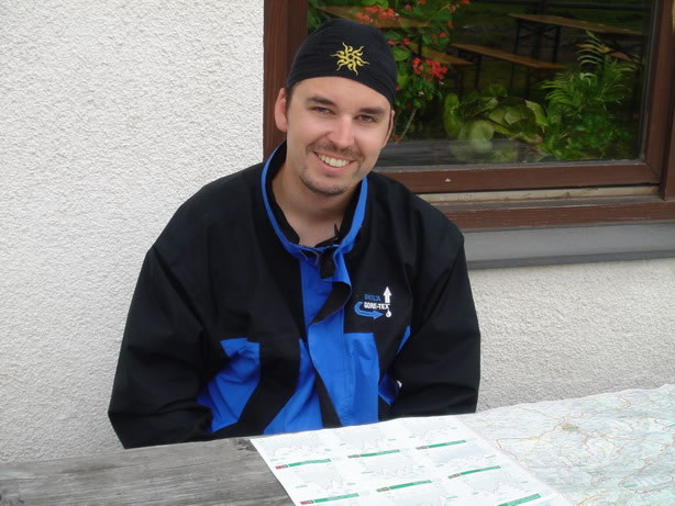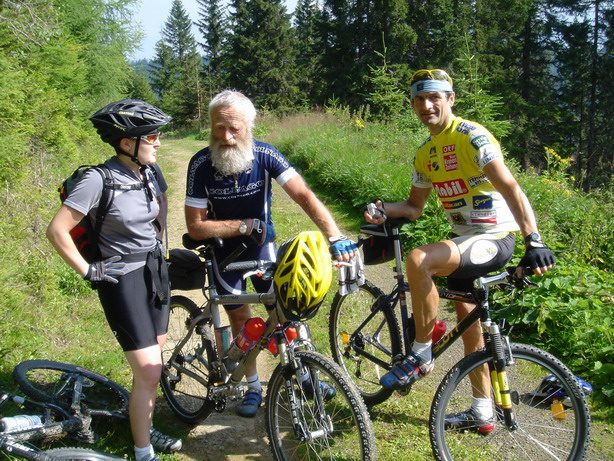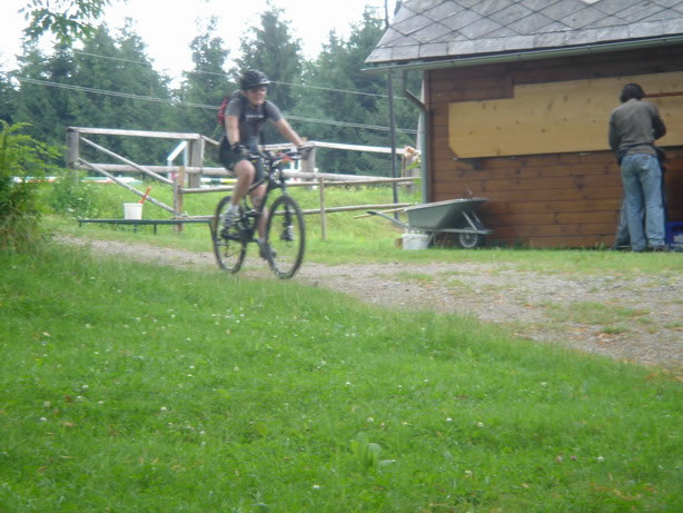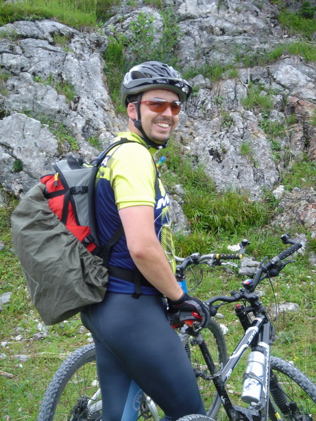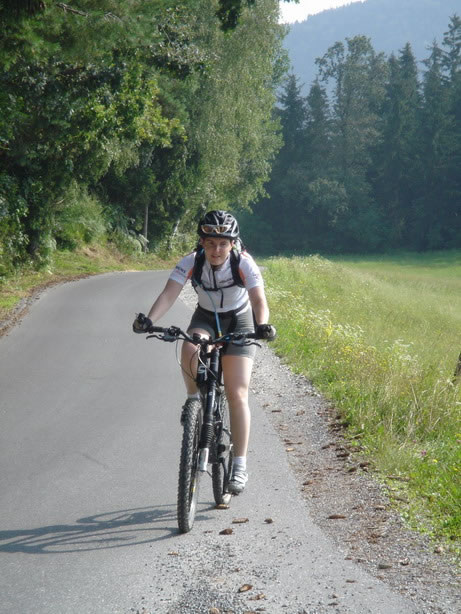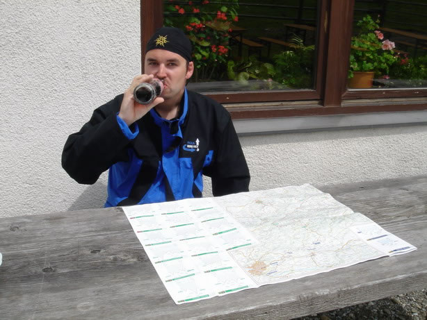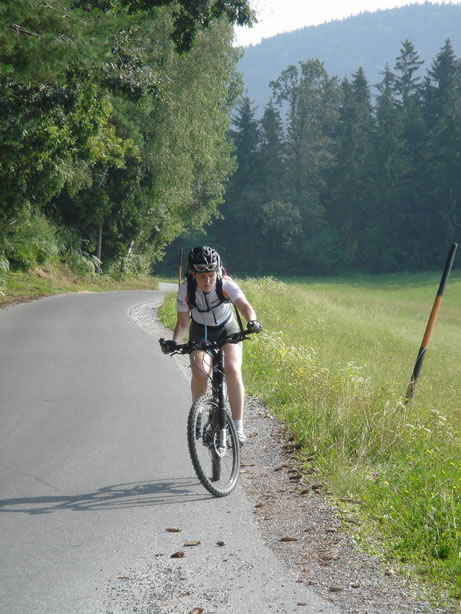 From there a technical descent lead us to Mürzsteg. Since we´re in the Alps, we knew that going down means that we had to go up again …We took a bite of our energy bar, and up we went towards Neuberg an der Mürz. Seemed as if that climb was too hard for Roland’s back wheel which decided to deflate spontaneously.