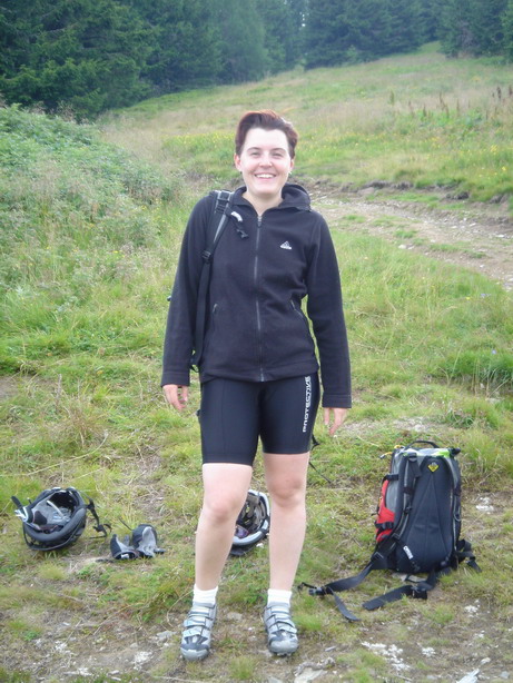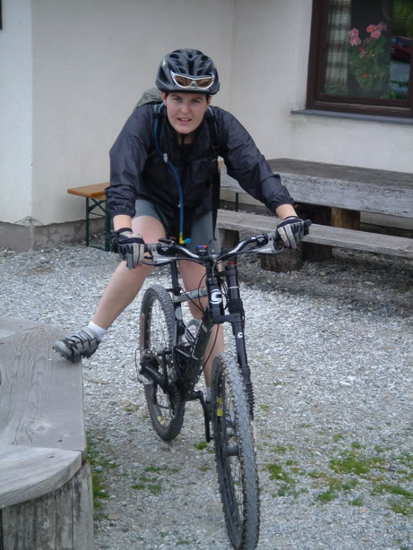 Crossing the village of Mariazell and down the Kreuzberg towards Mooshuben. From there we ascended up to Dürriegelalm. Last time we biked there, Katharina went off over the bar in a spectacular fall – luckily she avoided the move this time …