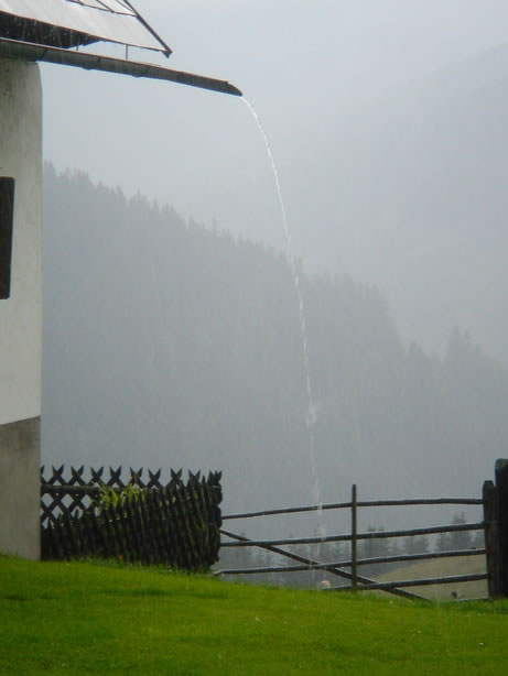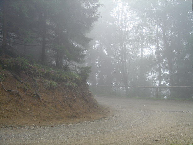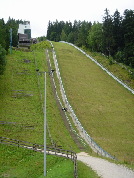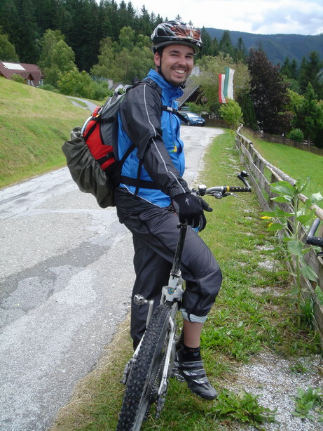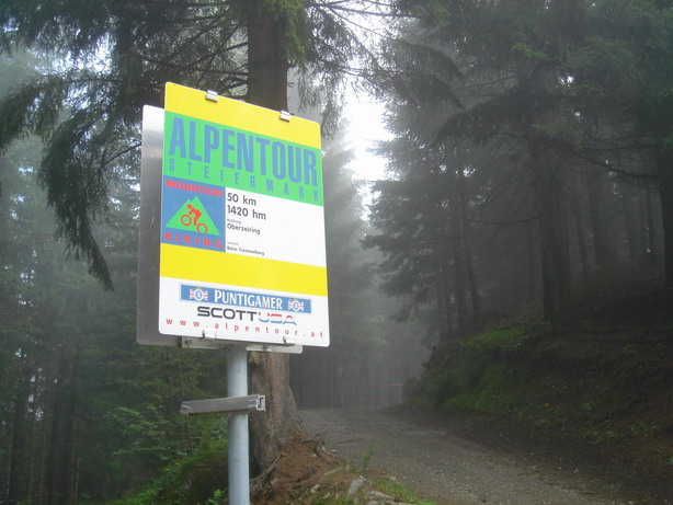 First thing in the morning, we rolled by the ski jumping hill of Kulm and from there to Wörschachwald and up to Spechtensee. Totally soaked we took the downhill to Wörschach and stopped at Sport Scherz to buy the ultimate rain outfit.