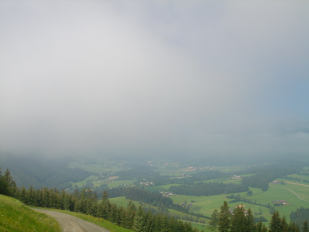 We continued our rout to Gaal and up a long ascent to Sommerthörl. A steep uphill on asphalt was getting very soon much more technical. This time, the weather god was with us and pushed the dark clouds into different directions. We finally arrived at the peak, this time in dry (but sweaty) clothes.