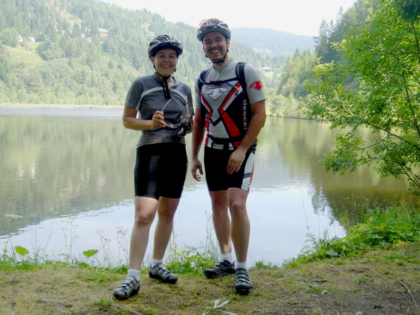On the top of the mountain, Katharina had a brilliant idea: “Let´s take that shortcut over there, such that we can stay on the same level of altidtude to get over to Seewigtal.” At the end, we had to do 200 meters of additional climbing, cycled on beautiful trails in the woods, had to cross two barbwires and were mostly doing that on paths that were prohibited for mountain bikers. One of those unexpected adventures which we love and will always remember …