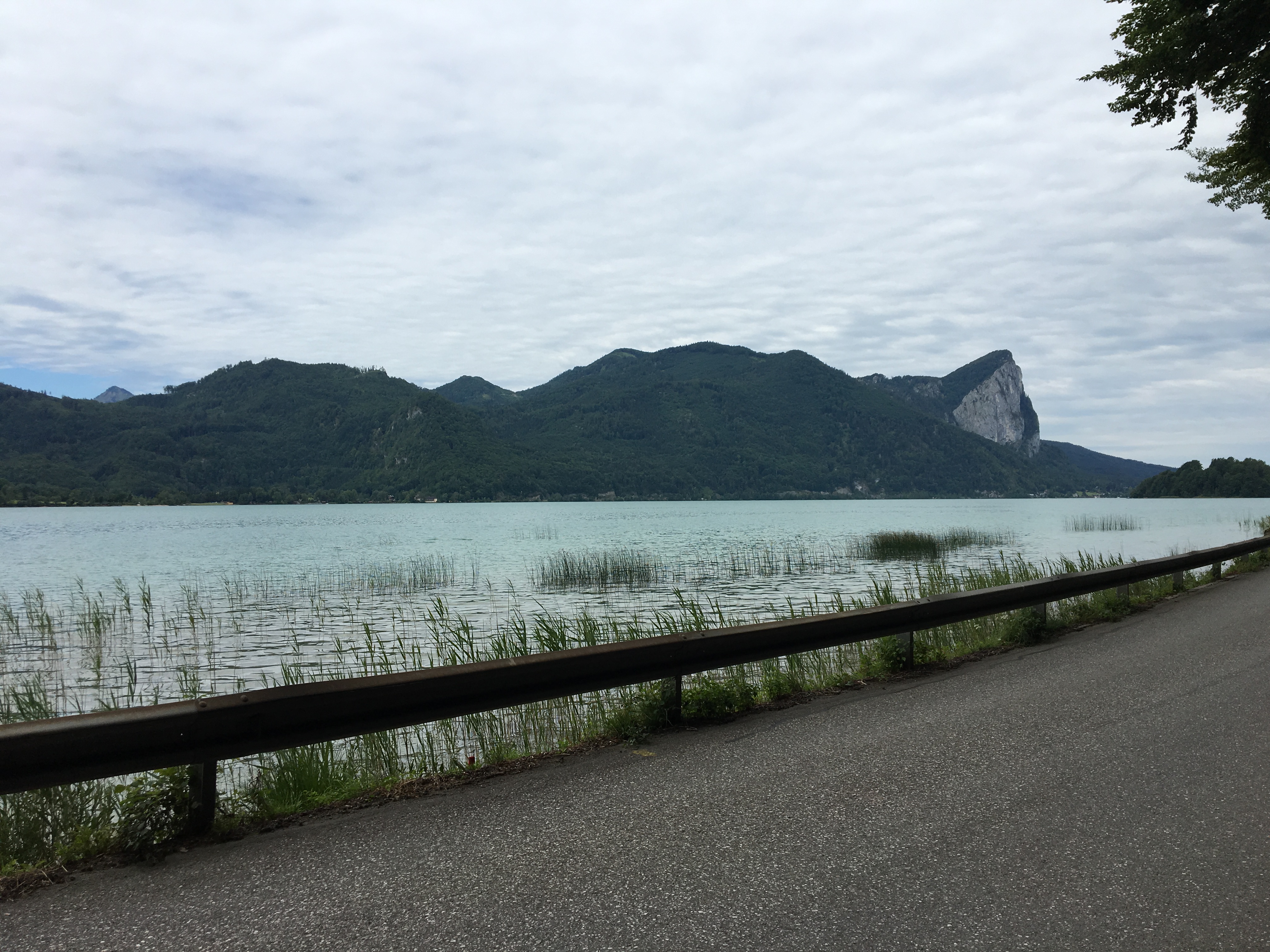 Continuing my ride on the western side of Attersee. Passing the picturesque villages of Litzlberg, Attersee and Nussdorf, over hilly roads back towards Unterach and lake Mondsee. Following the road along the eastern side of the lake (beautiful views of the mountains Drachenwand, Schafberg) towards Mondsee town.