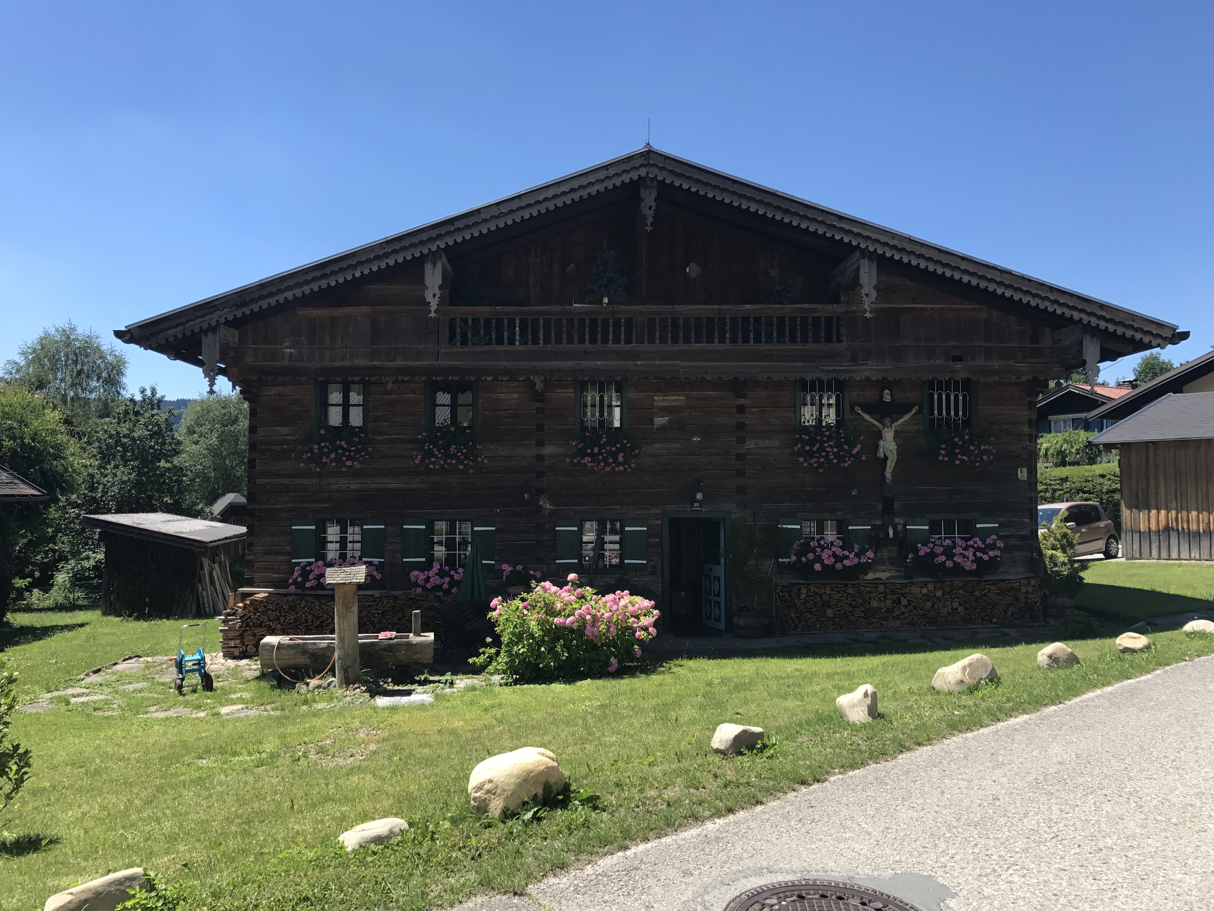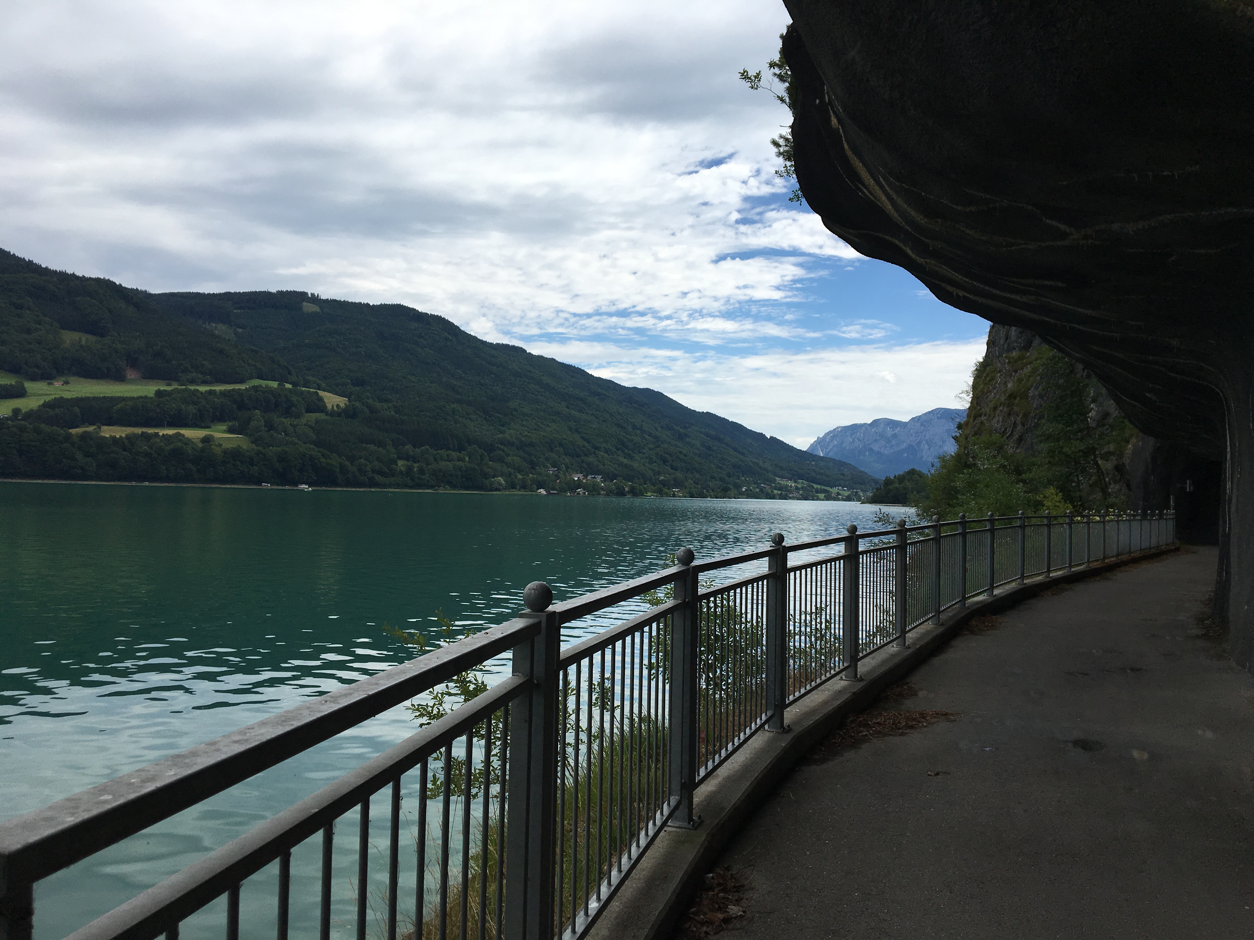 Deciding to rescue ourselves to the little strip reserved for walking/biking we continued the last couple of kms on the eastern side of the lake. Then continuing our ride on the scenic little road on the western part of Irrsee. Great views back to Dachstein glacier and Drachenwand while we riding back to Mondsee and St Lorenz.