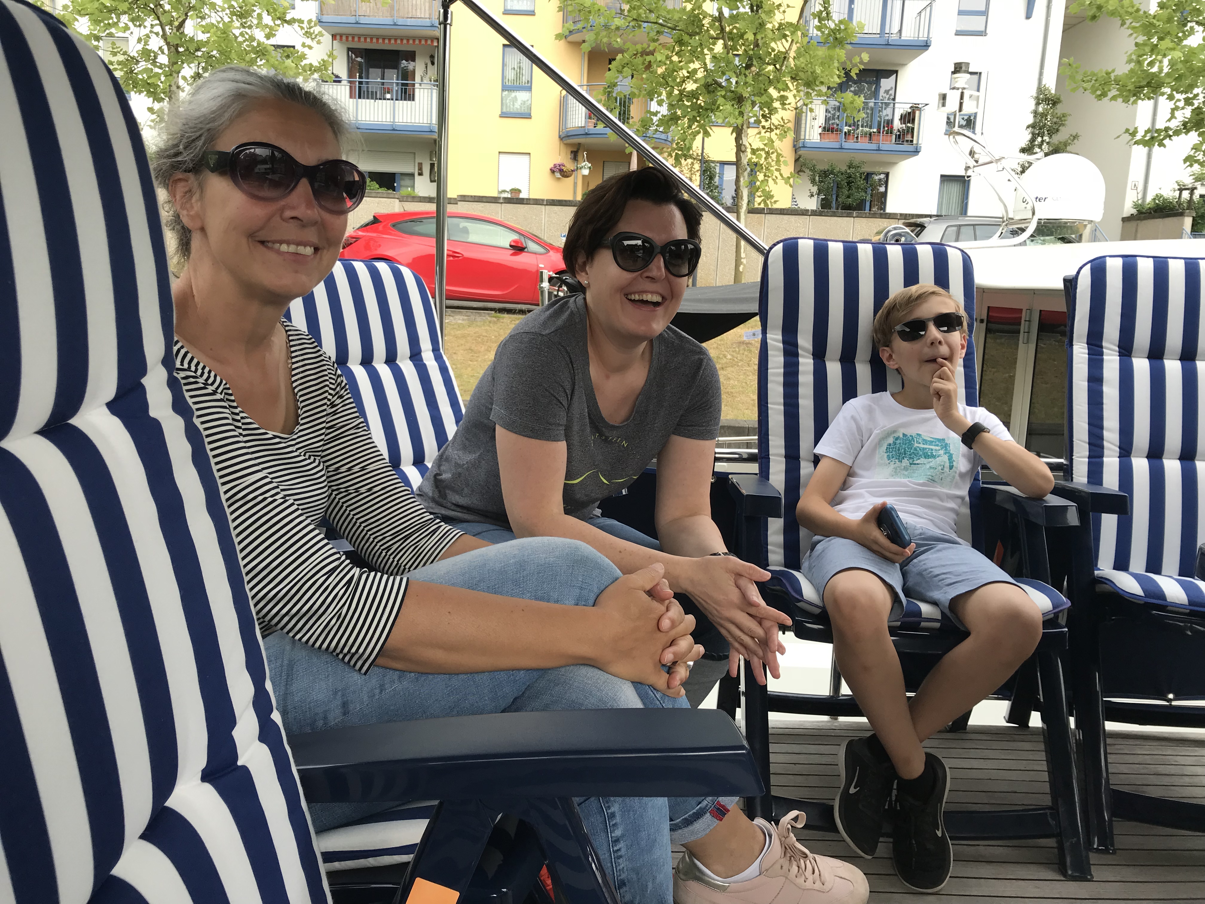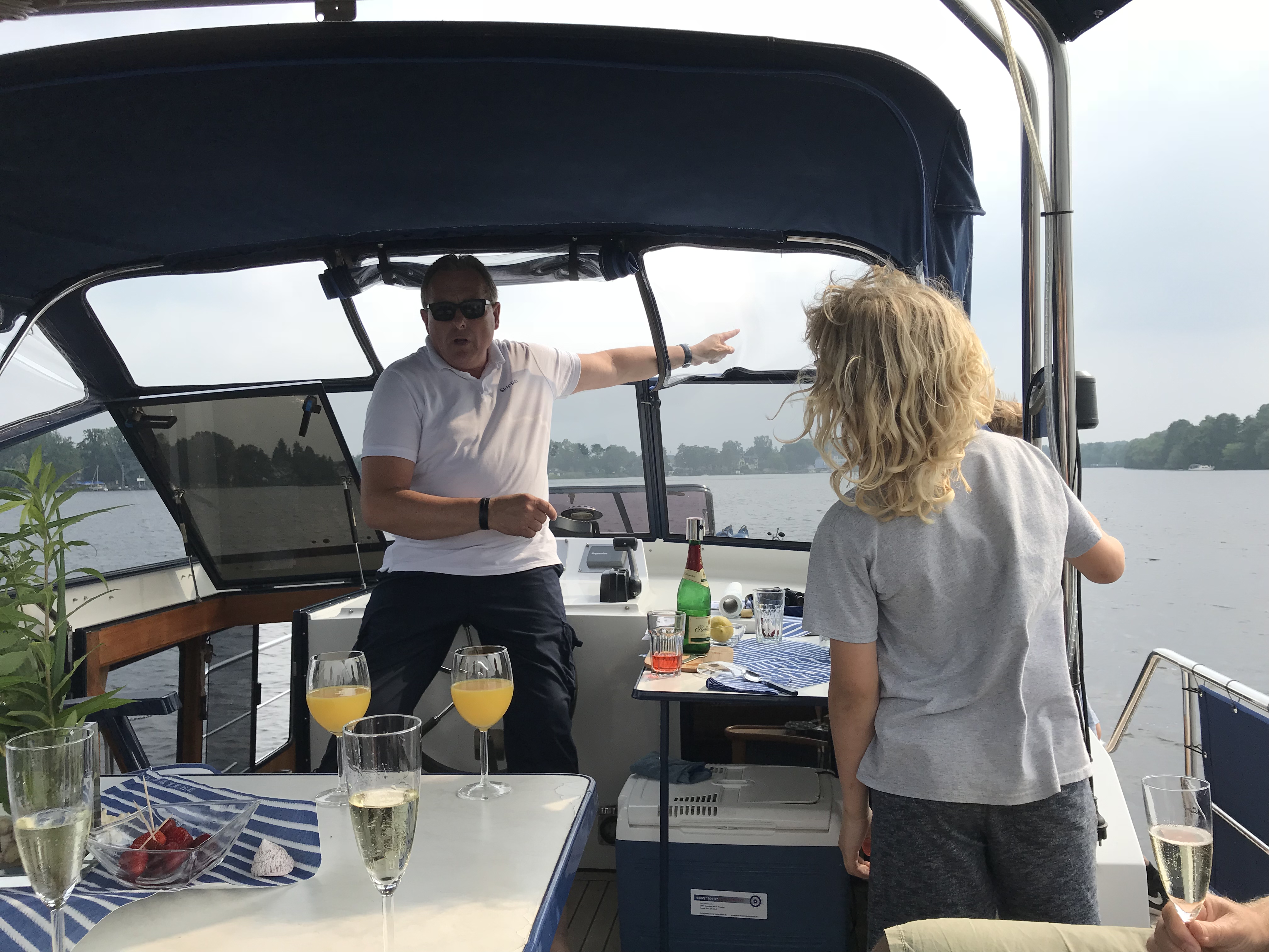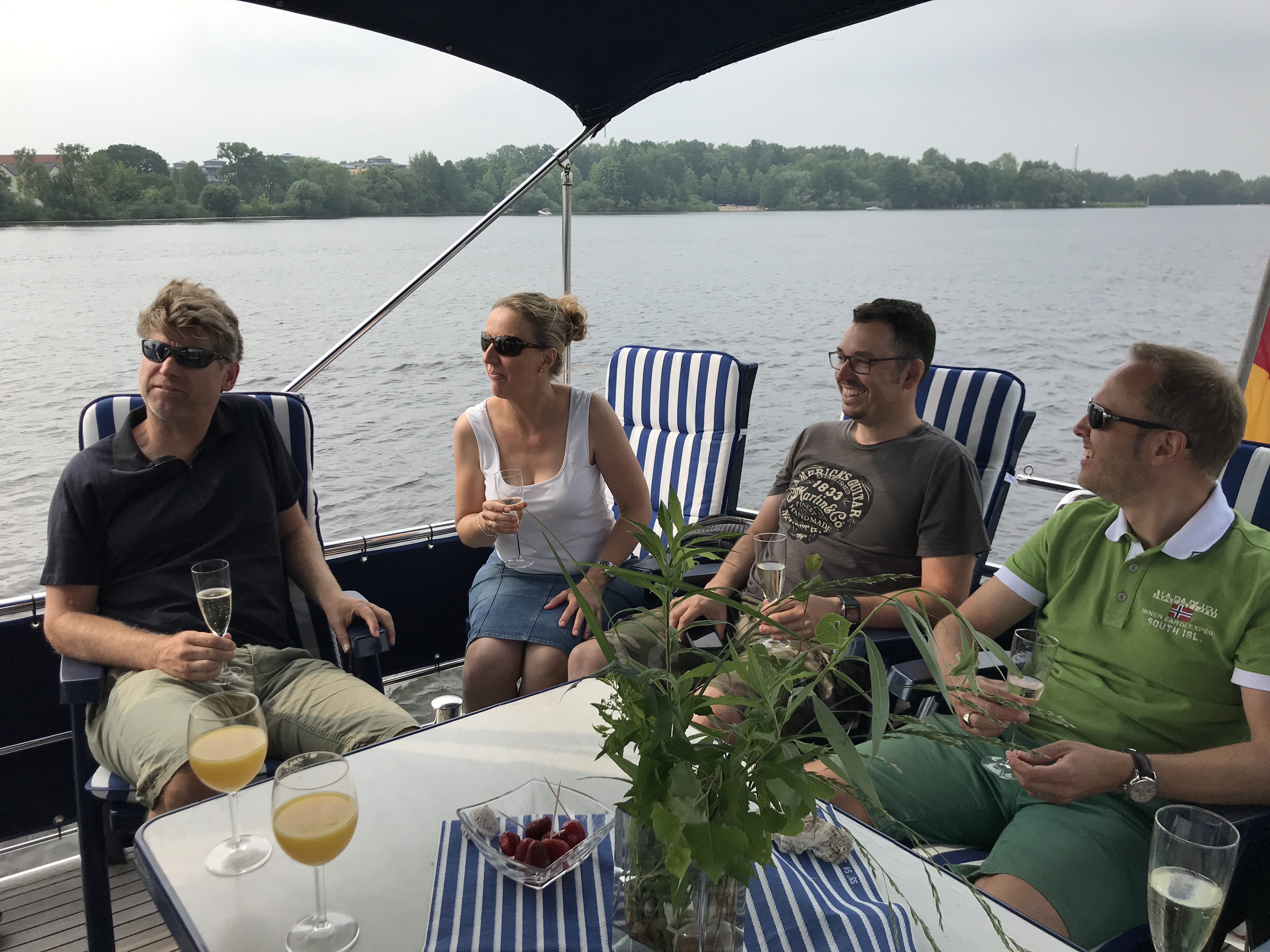 In the afternoon we met up with Charlie’s Angels – you might remember an earlier post. We re-united for a boat trip on the Havel and a nice dinner including our partners and kids. The river Havel is a great recreation area especially in summertimes. Along its course it forms some nice lakes and people are enjoying all sorts of watersports.