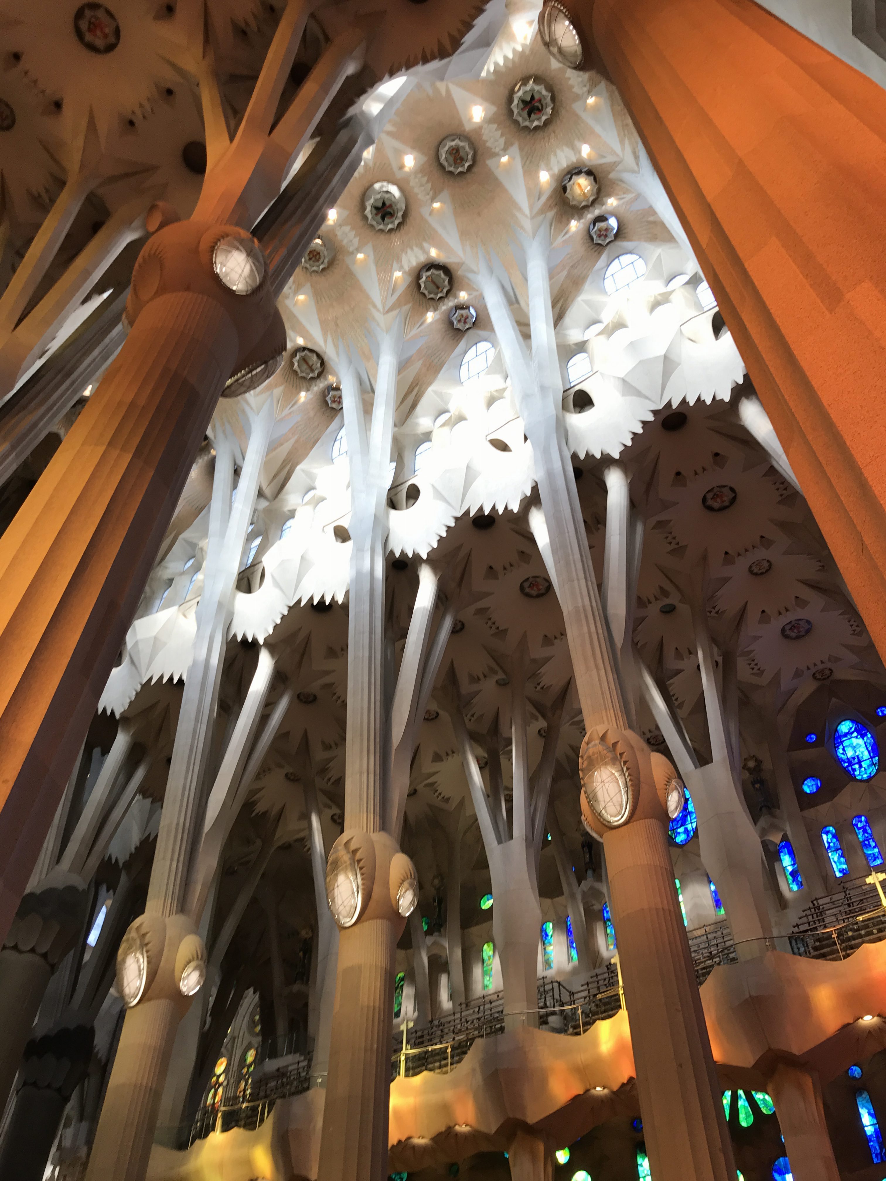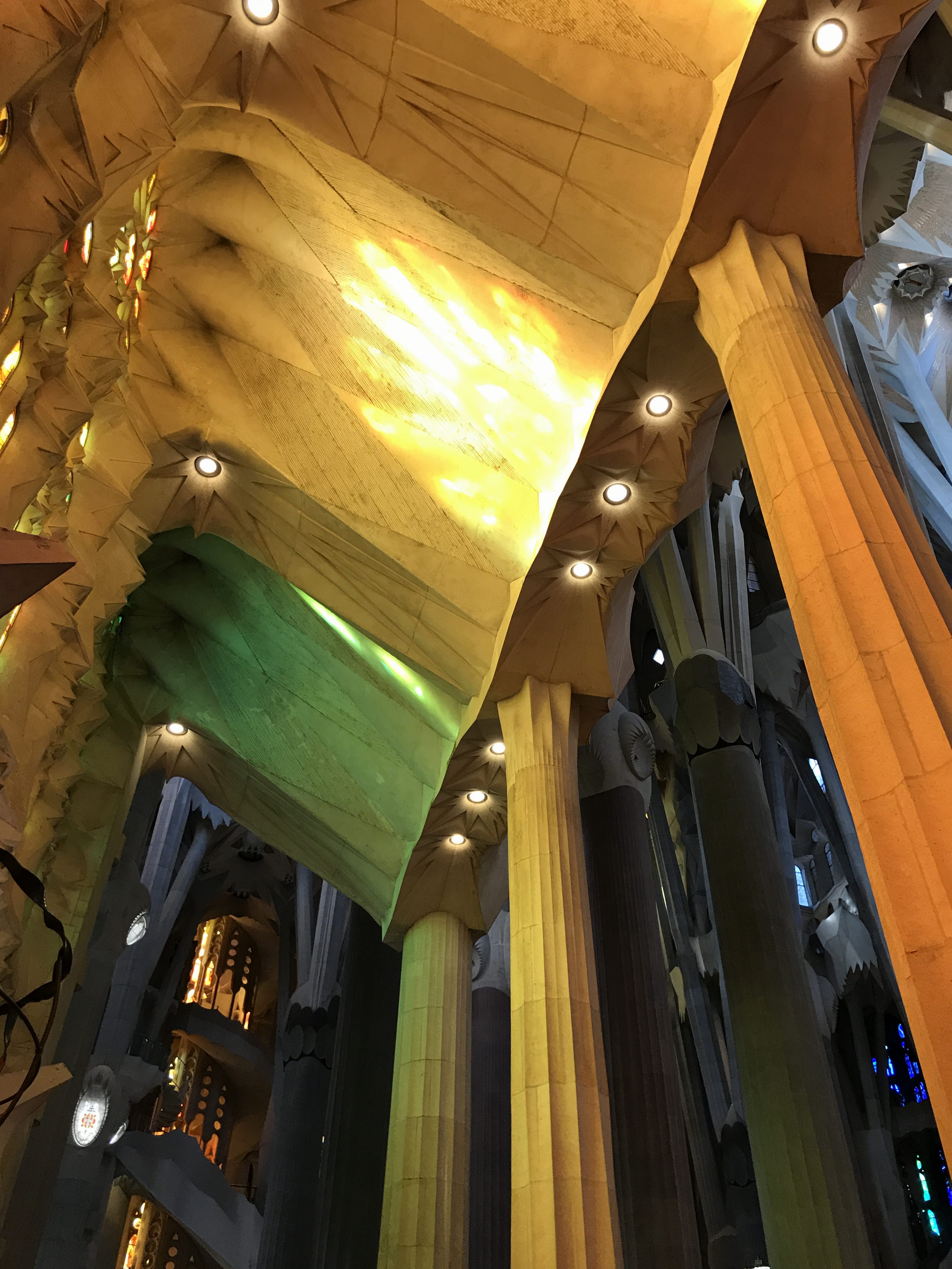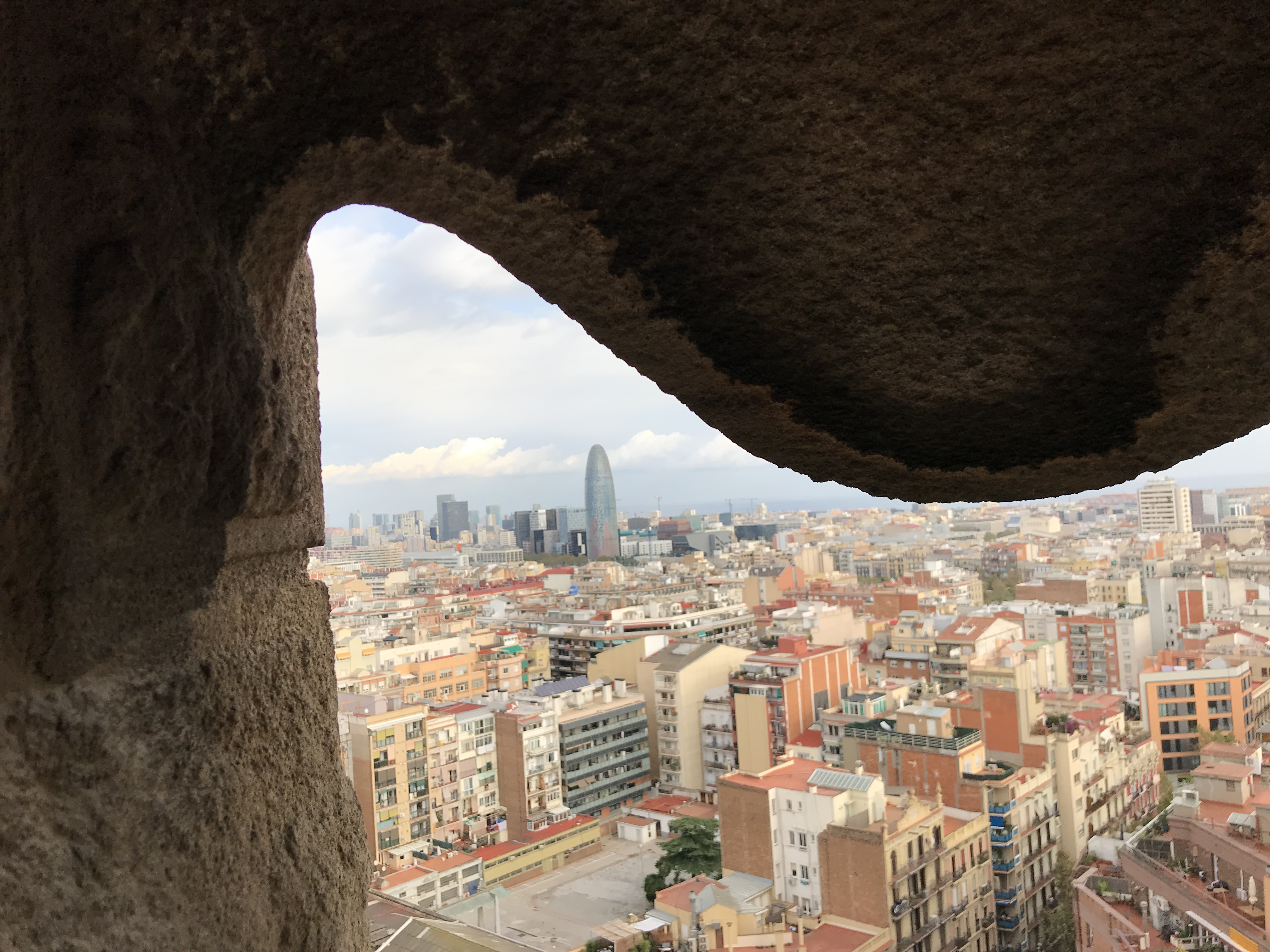 Sib & myself pre-ordered tickets online, including a visit to one of the towers – a smart move that enabled to skip the long lines of visitors. Equipped with our audio guides we entered the Sagrada Familia and were welcomed by a very special atmosphere created by the light coming through Gaudi’s carefully designed windows – the light is constantly changing while you’re guided trough the basilica.