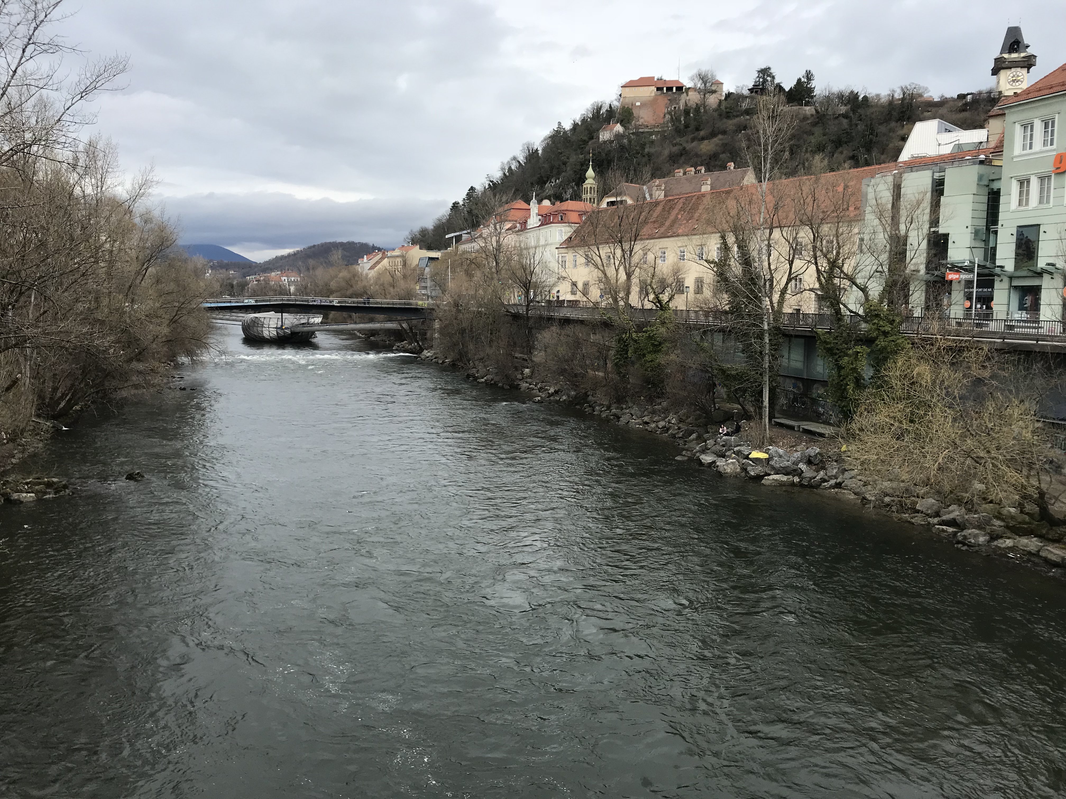 After saying good morning to our happy campers, we drove to Graz to visit my parents. When we arrived there we did a short run along the river Mur, passing some tourist attractions along the way in the historic city center.