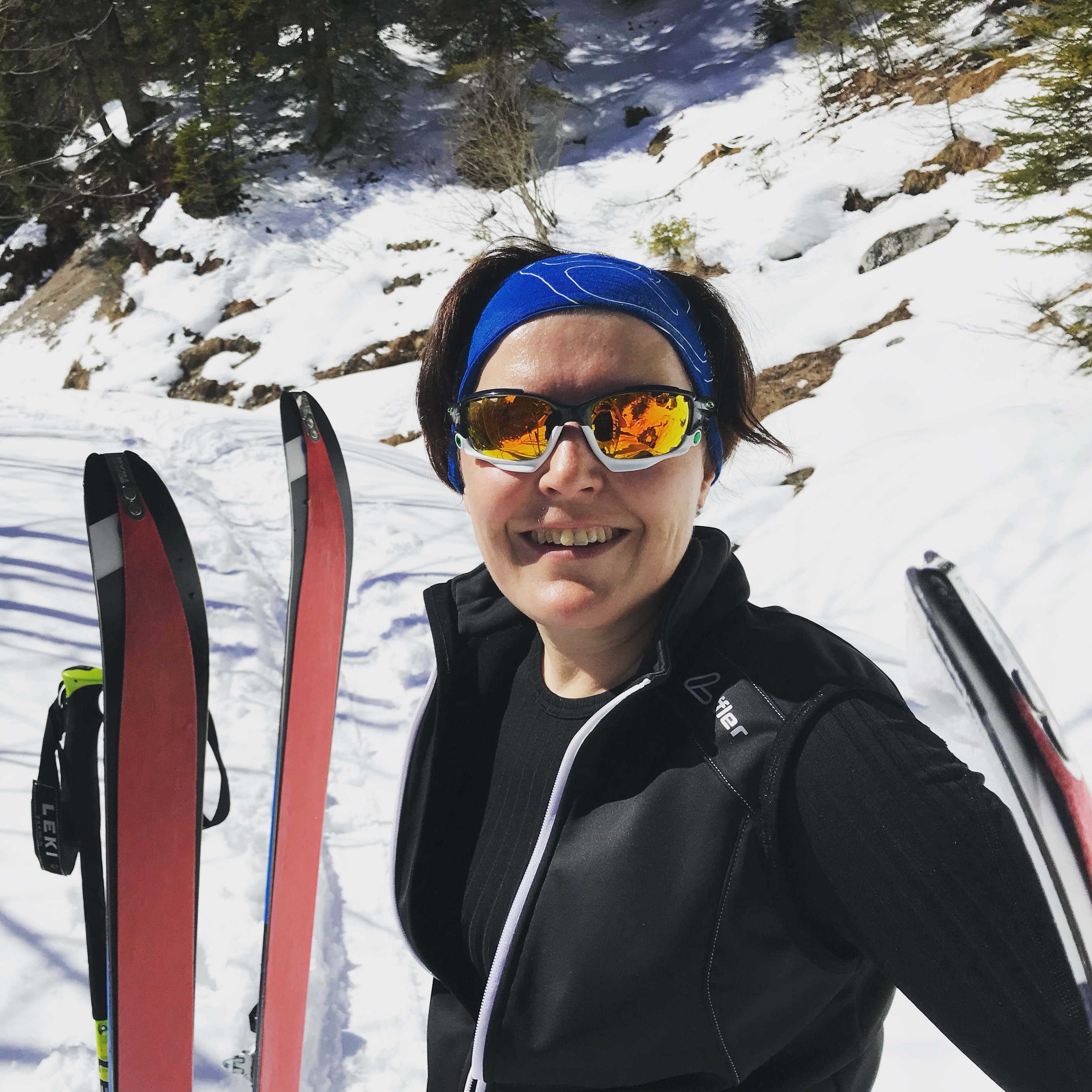 Unfortunately we didn’t take the time to wax our skis properly. That combined with a “stop and go snow” and quite some uphills made it a hard day on the slopes for us. Nevertheless we were not sure if it was therefore or because of the astonishing view from the top of the hill (at 1.770 meters above sea level) we were breathless.