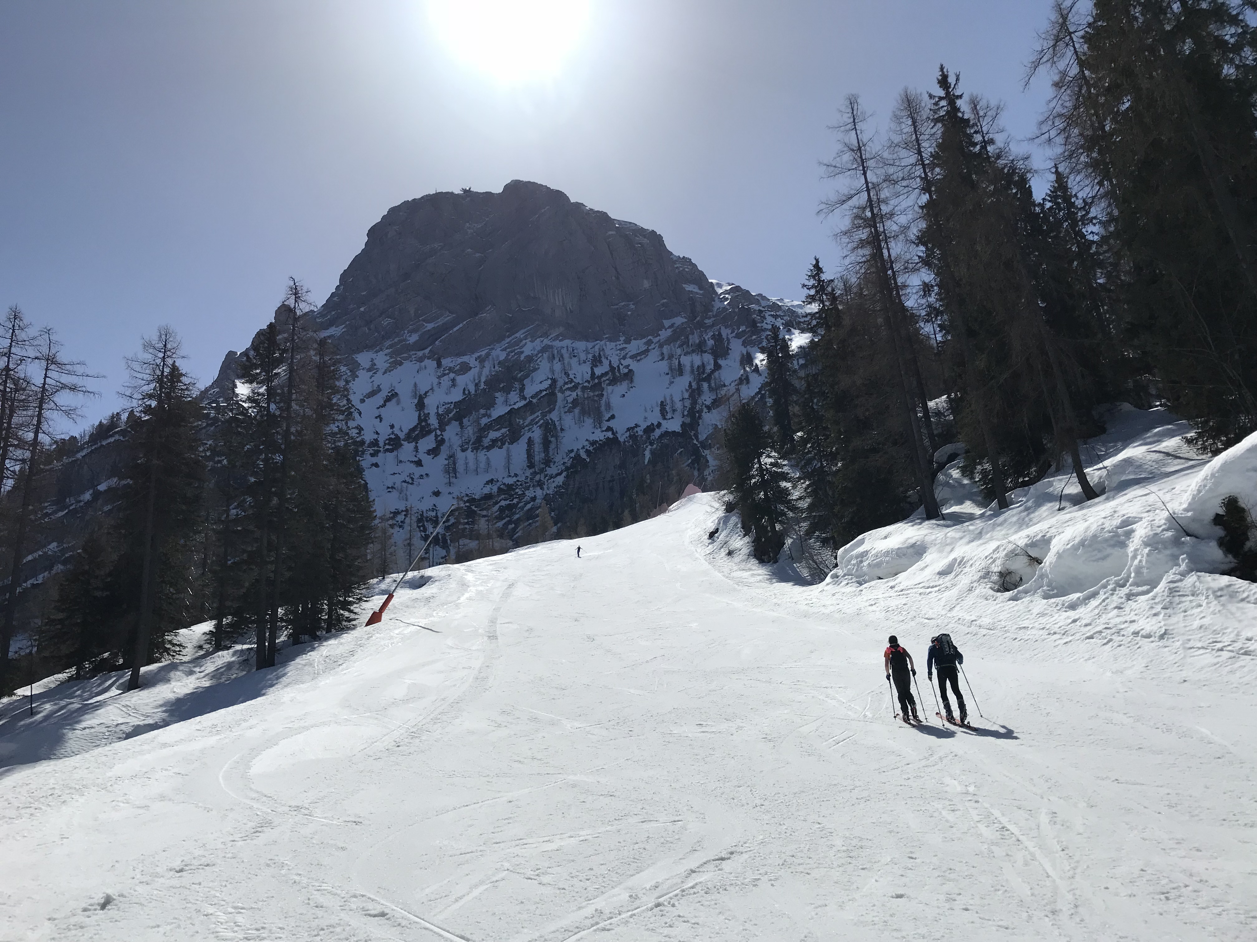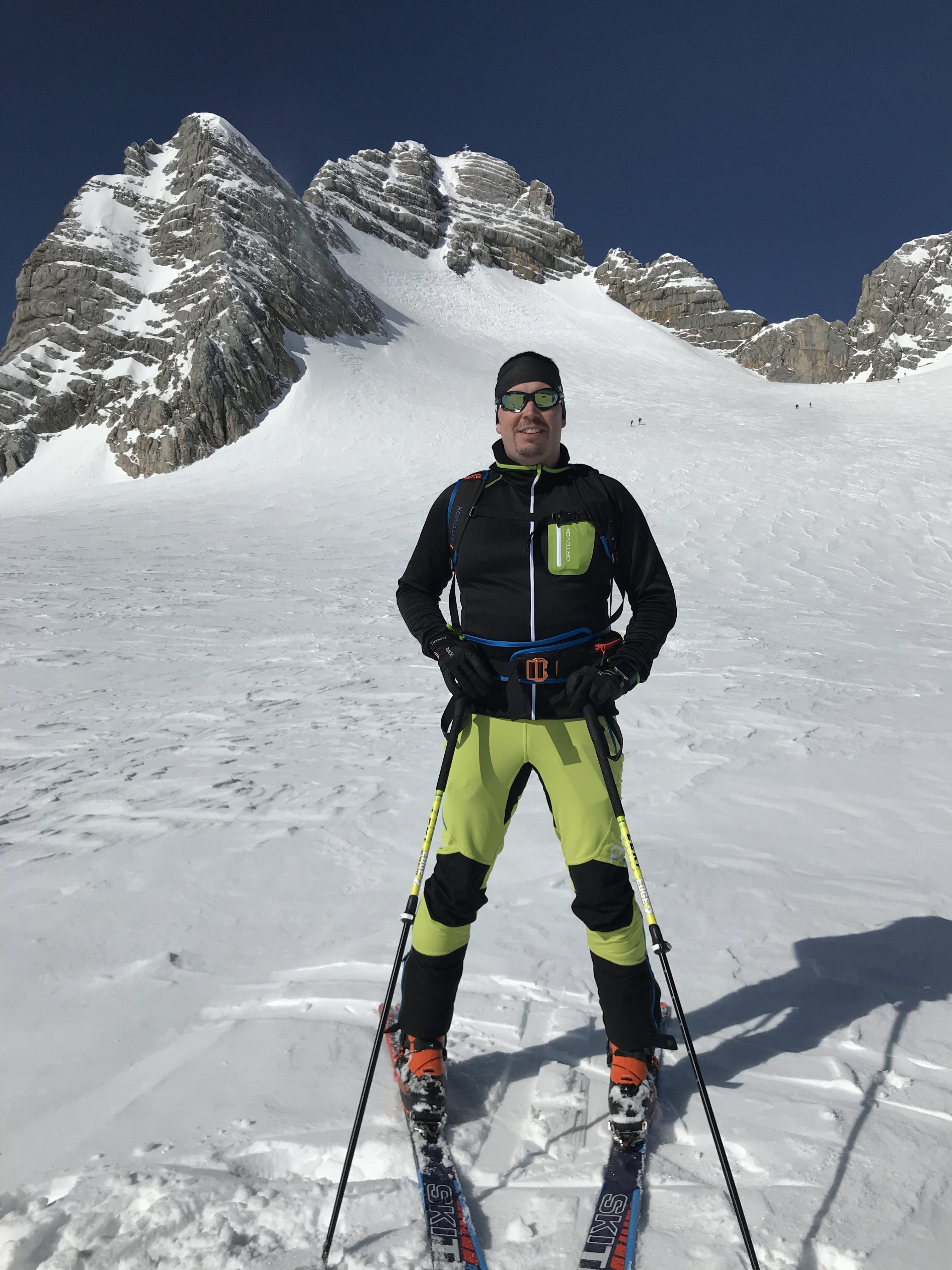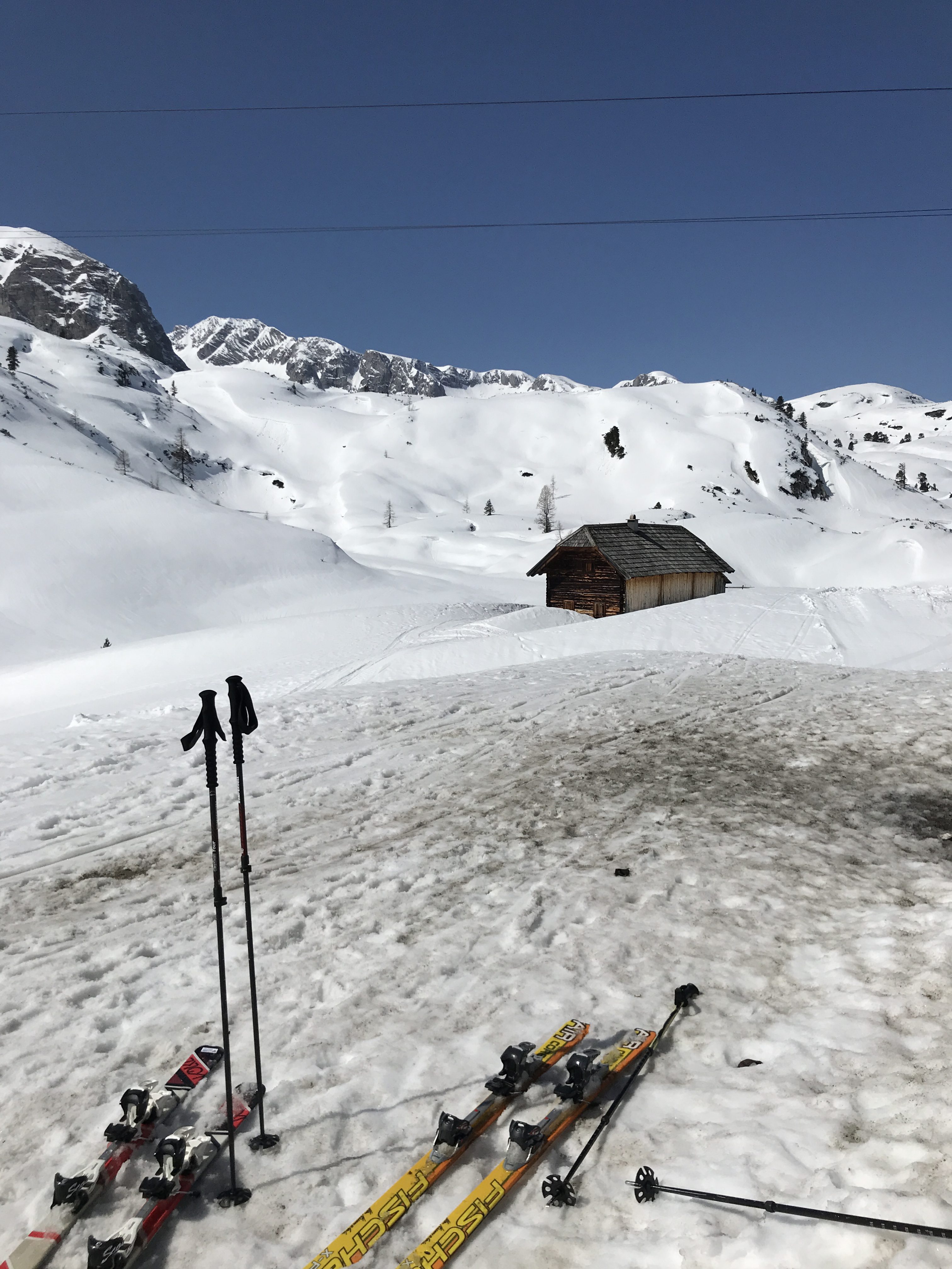When we looked out of the window in the morning, we decided that we had to take this opportunity to do a final Dachstein glacier crossing for this season. This is a magnificent backcountry tour where you cross the glacier Dachstein from Styria to Upper Austria by skis. We took the first gondola up to the highest point of the tour (2.700 metres above sea level). From there it is mainly downhill with some short uphills in between to the end of the tour in Obertraun. Back in Obertraun our Taxi was already waiting for us getting us back to Ramsau.