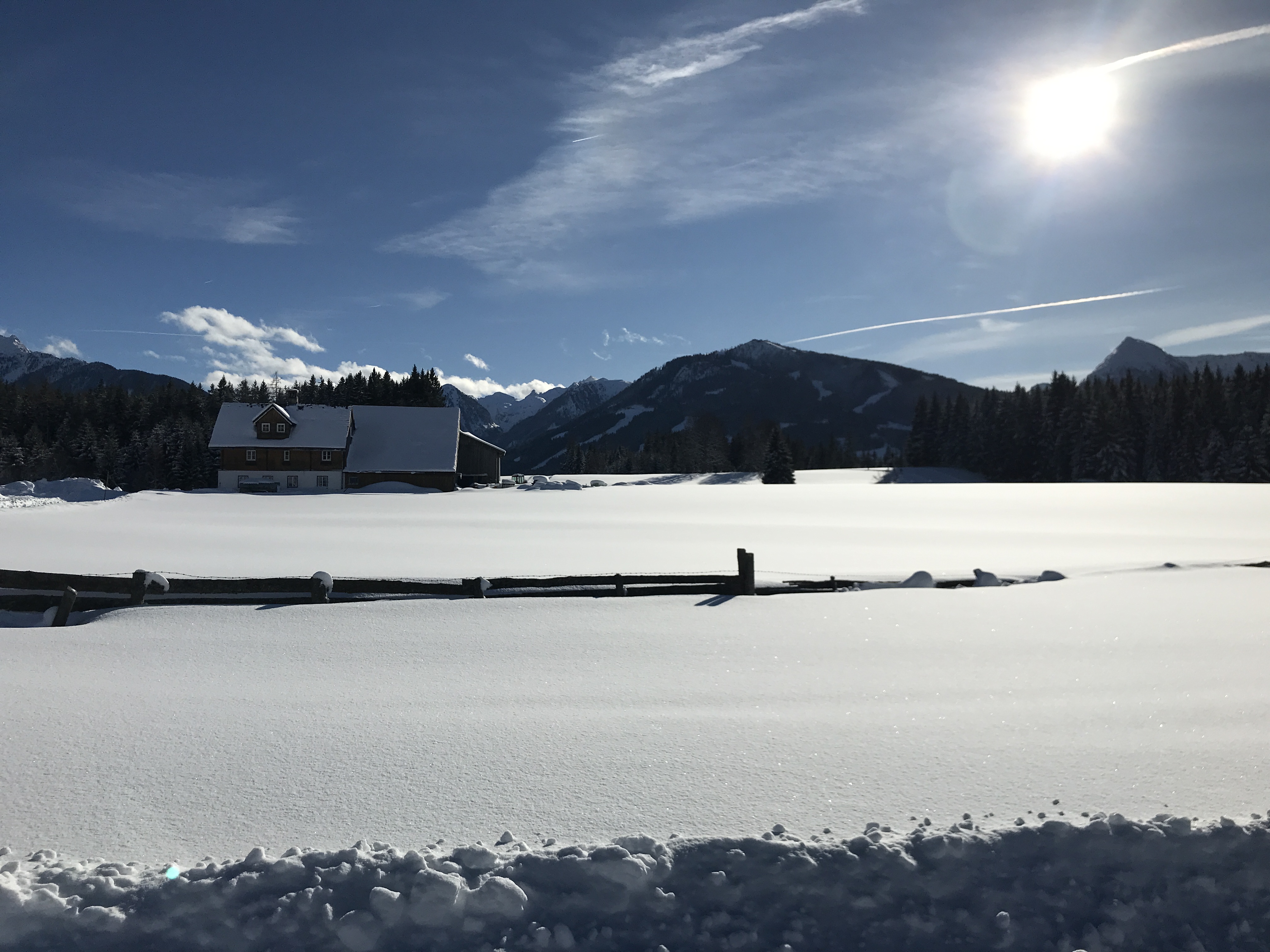 The next day we decided to shake things up with some cross country skiing. The weather was great, the tracks were perfect, with only one minor drawback: our skis were waxed for higher temperatures. Big bummer. However, this just meant burning some extra calories… Very positive, because we had planned for some Wiener schnitzel and fried chicken at Gasthof Edelbrunn in the evening. You should really try their fried chicken (“Backhendl”) when you´re in Ramsau, so delicious.
