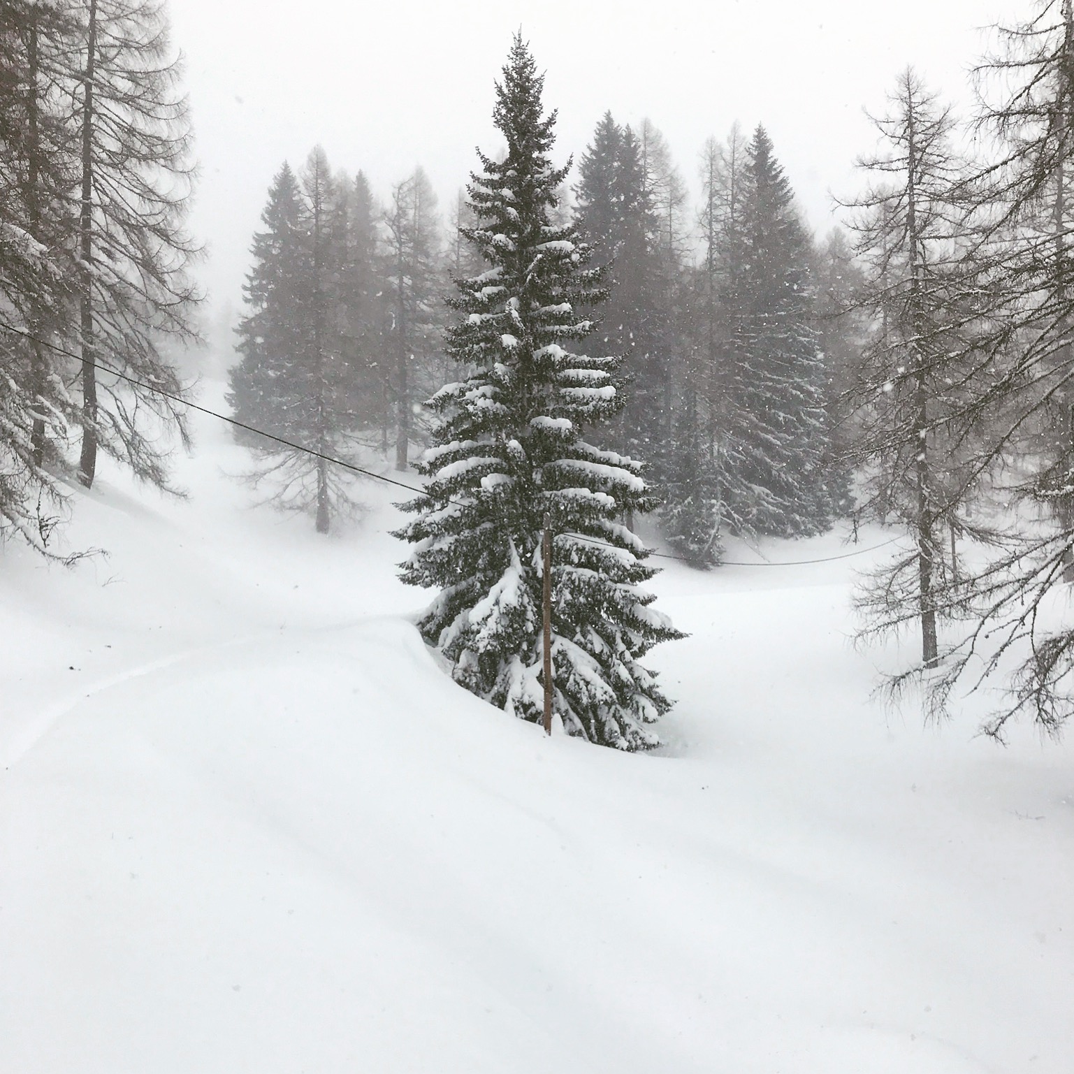 The next day we woke up to an additional 20-30 cm of snow. And it kept snowing for the rest of the day. Add strong winds to the equation, then you can imagine what it felt being out there … Nevertheless, we decided to do an easy back country tour and where hoping for less wind in the woods. Well, there was a little less wind, but we were the first ones up there and so we had to create our own tracks in 50-60 cm deep powder. It was a lot tougher than we expected. But what an adventure …