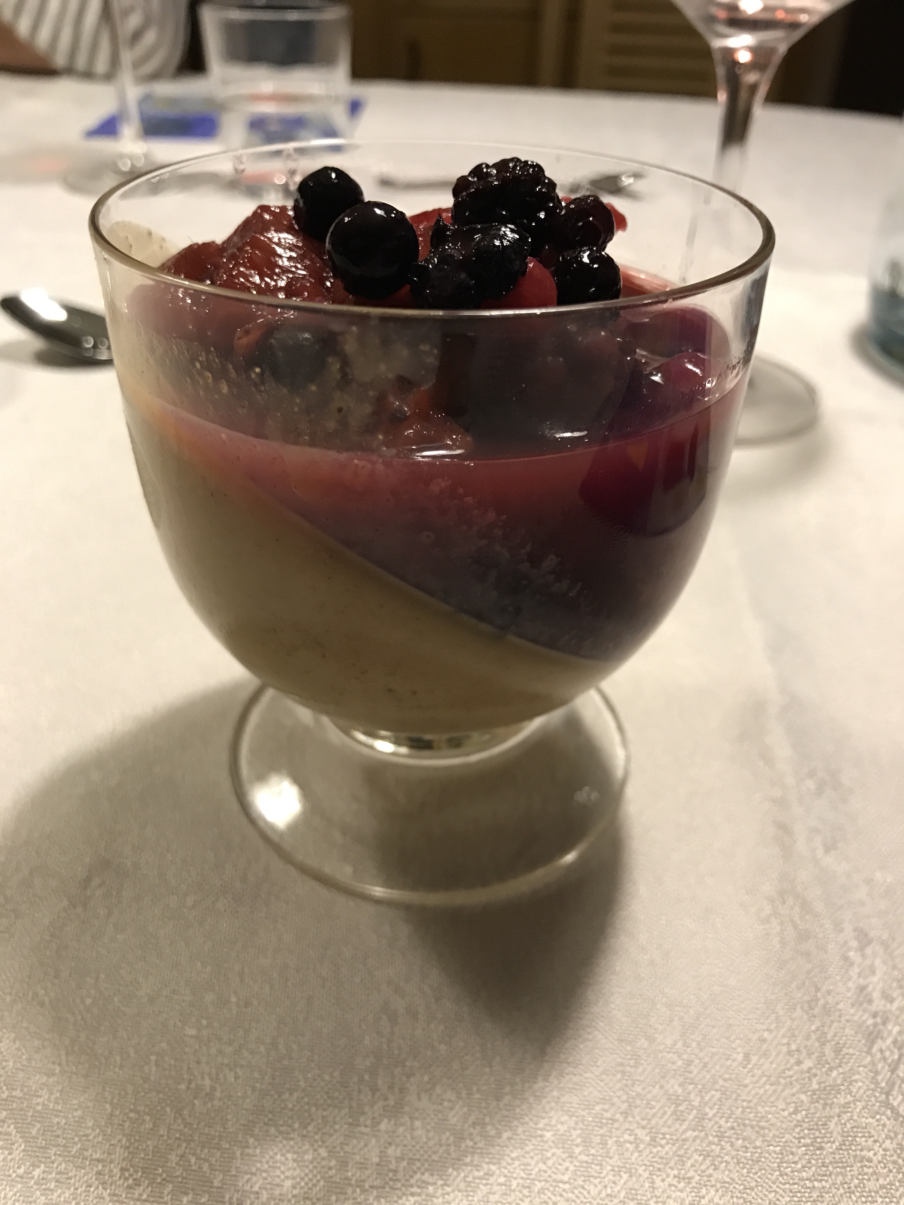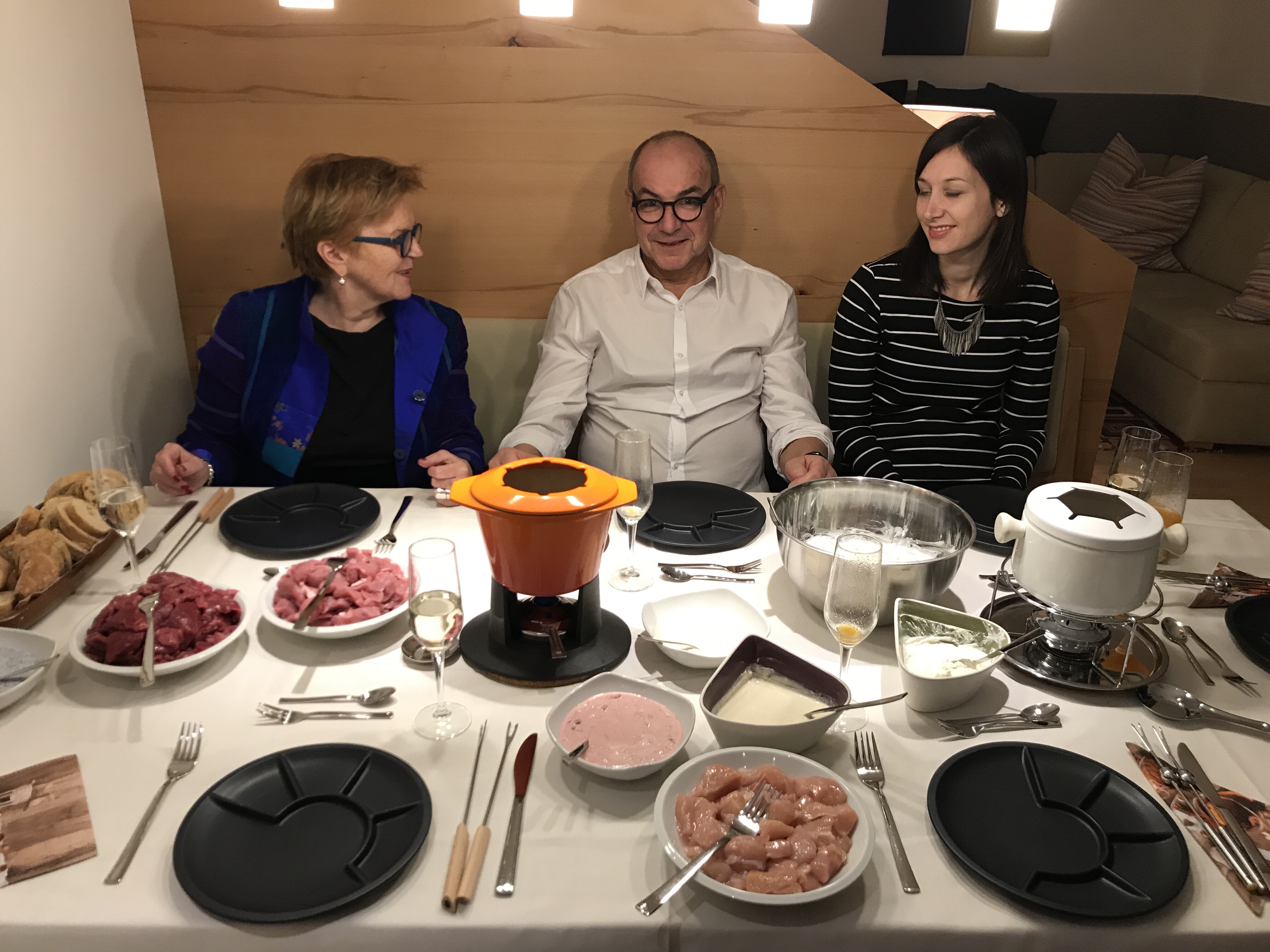 Apropos Christmas Eve Dinner – we had Katharina’s Mum and her youngest brother with their partners over for Dinner. It was so nice and there were so many stories to be told, that we almost forgot to distribute and open the presents. What we had for Dinner? We started off with a salmon-avocado cream in open Lefse-Tortellini, followed by a Fondue and a Gingerbread Tiramisu. All dishes were accompanied by some good wines. In short, we were glad, we did some exercise before the feast 😉