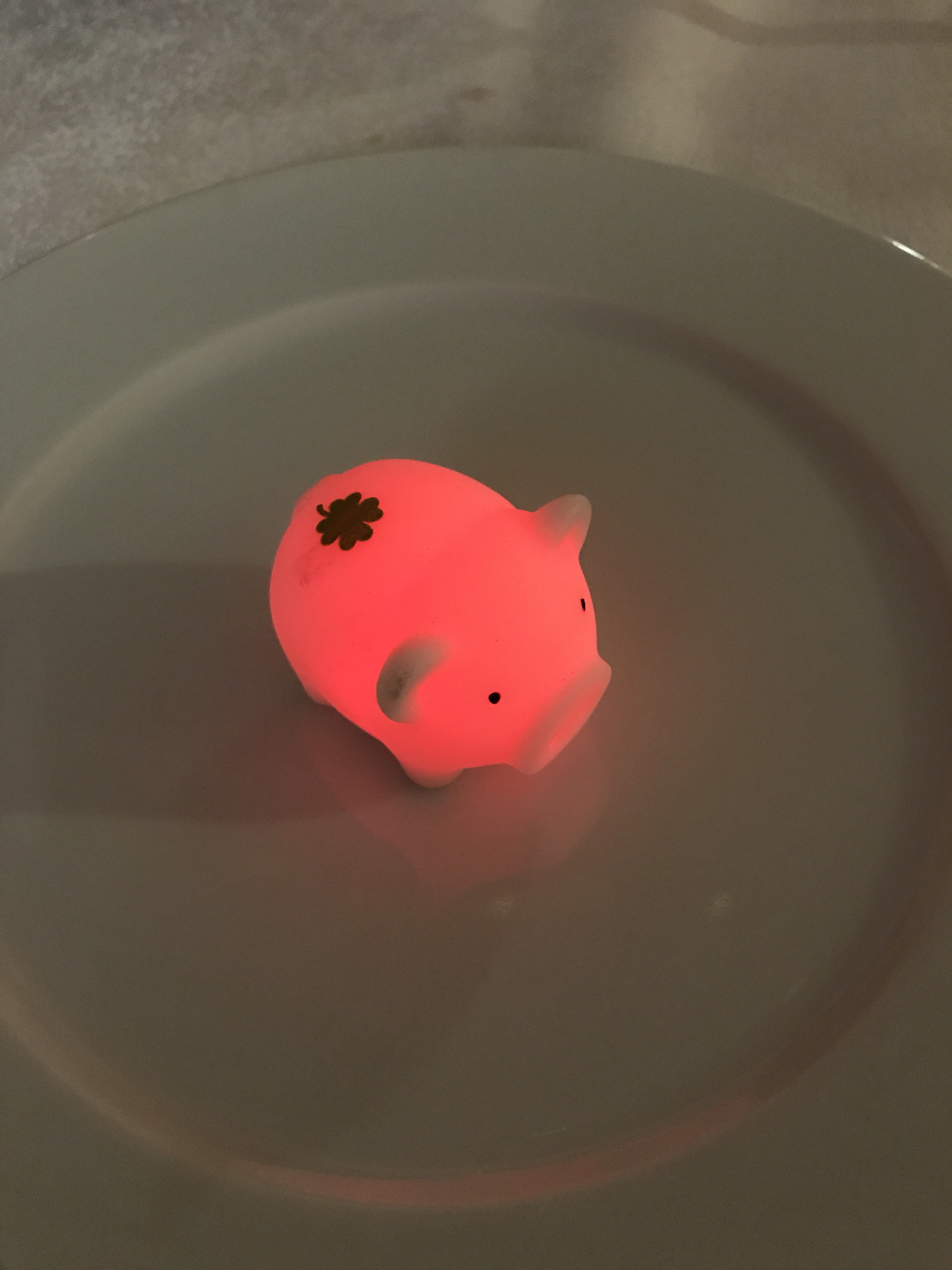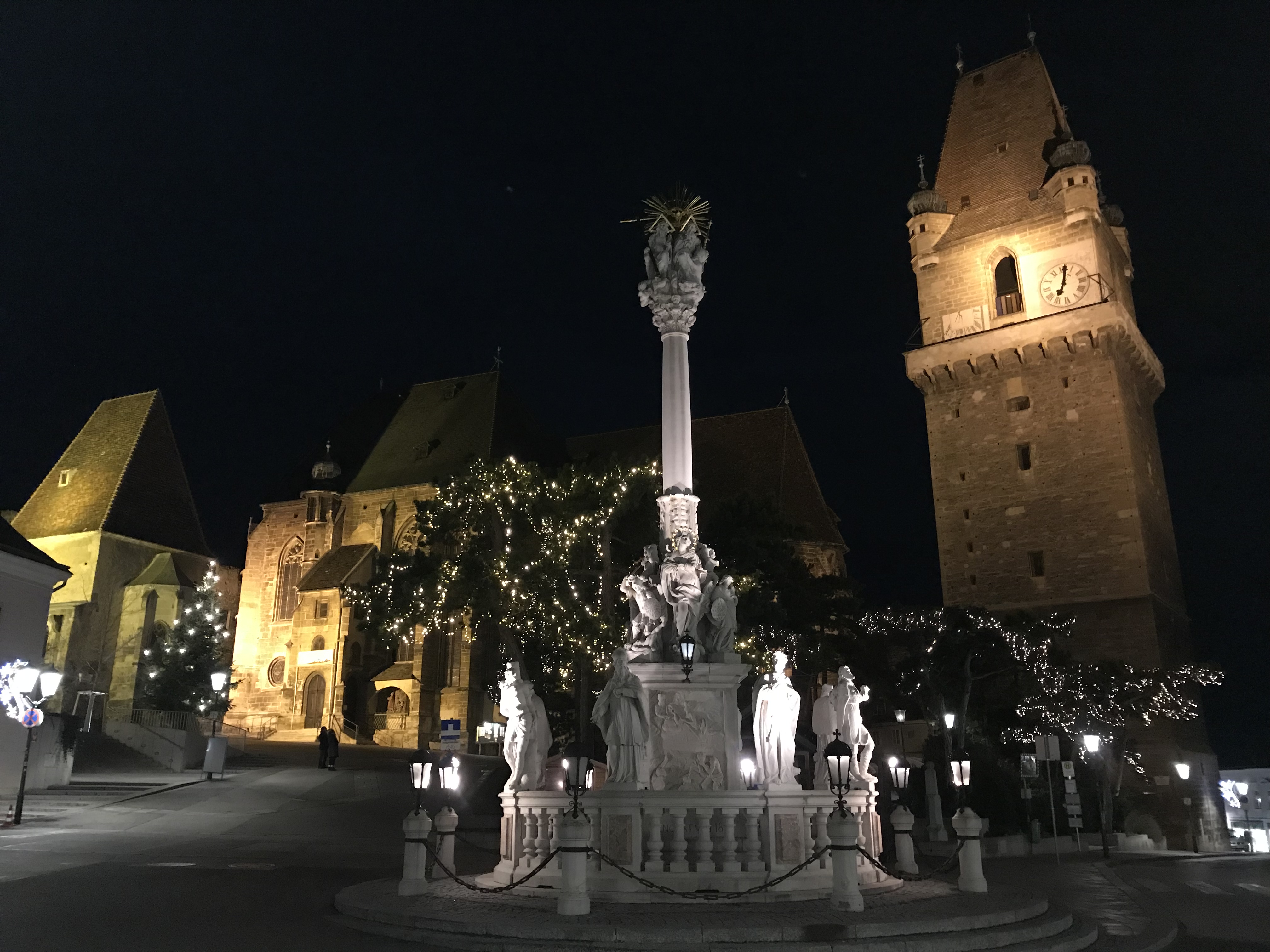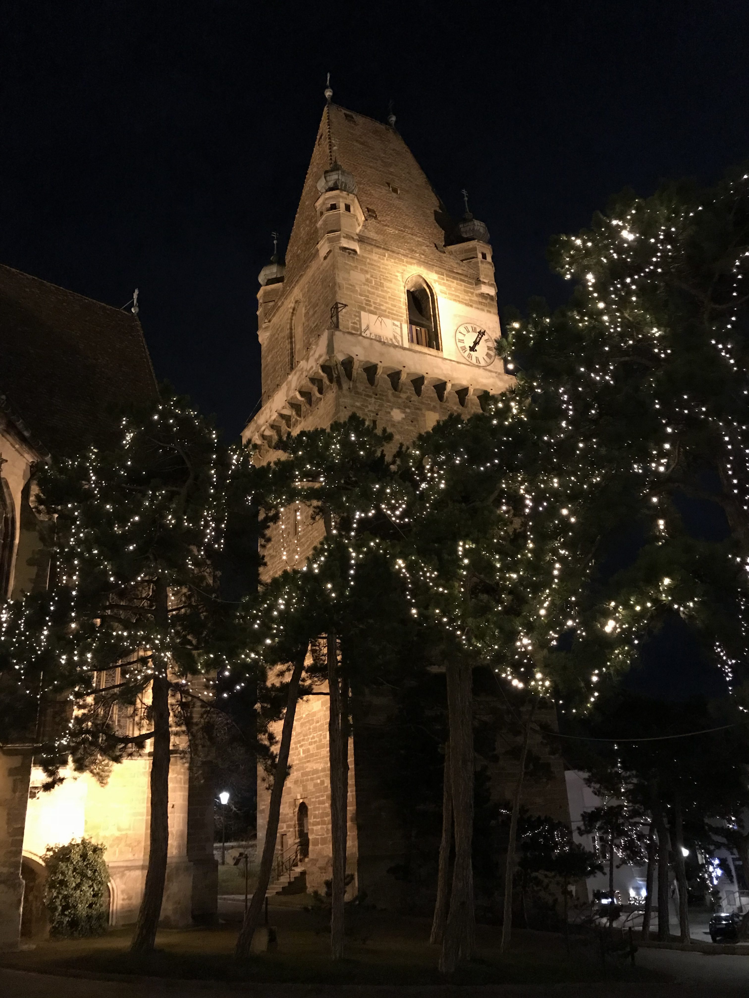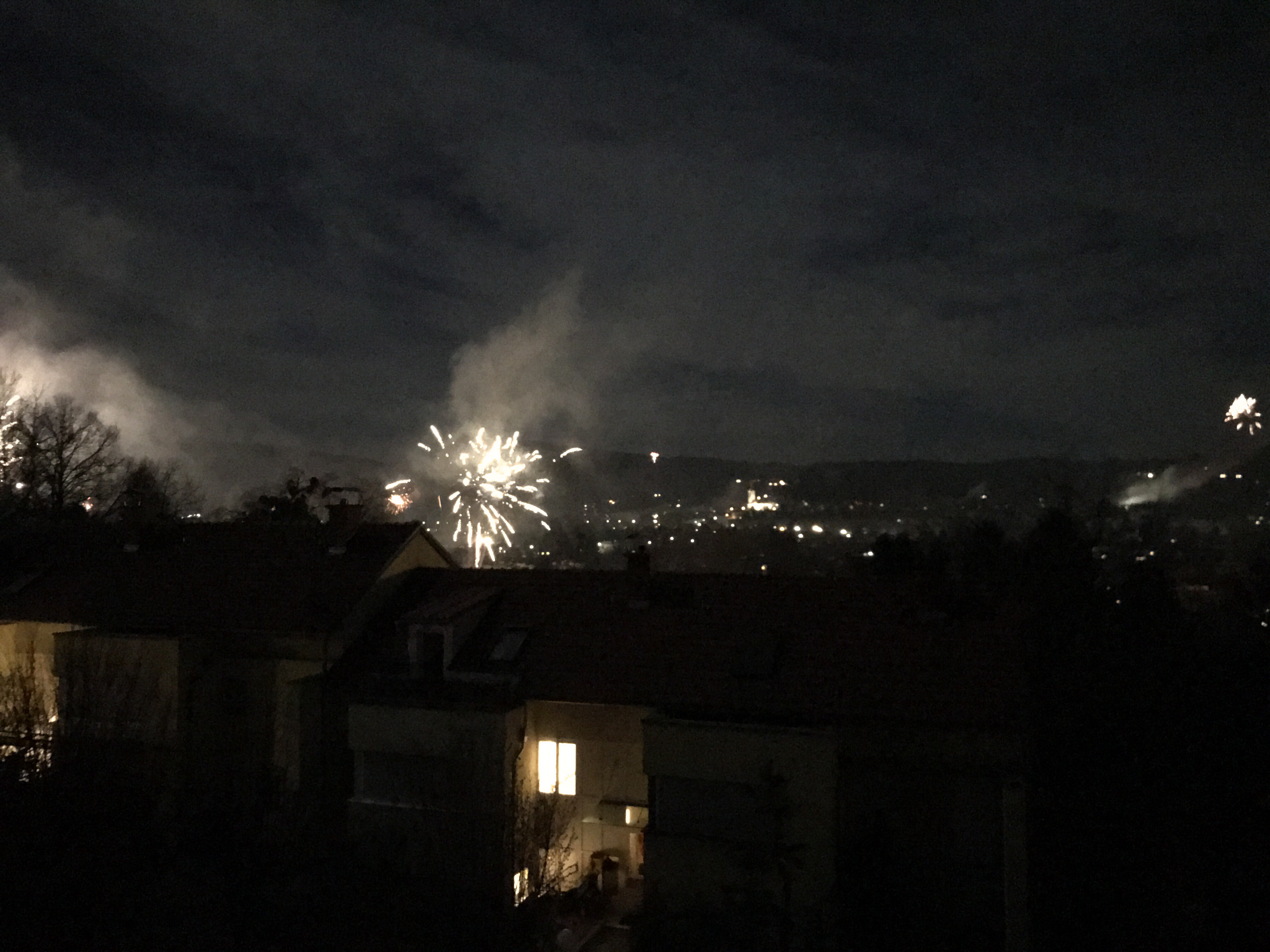 Ingrid had prepared a great 3 course dinner for us – as a starter we had a soup of horseradish and apple, followed by a delicious filet of pork and finished up by a gingerbread mousse with rum plums. From the balcony of their house we had a great panoramic view over the fireworks in and around Graz. The highlight of the evening was the talisman Peter gave to Katharina: a little pig, changing colours and blinking.