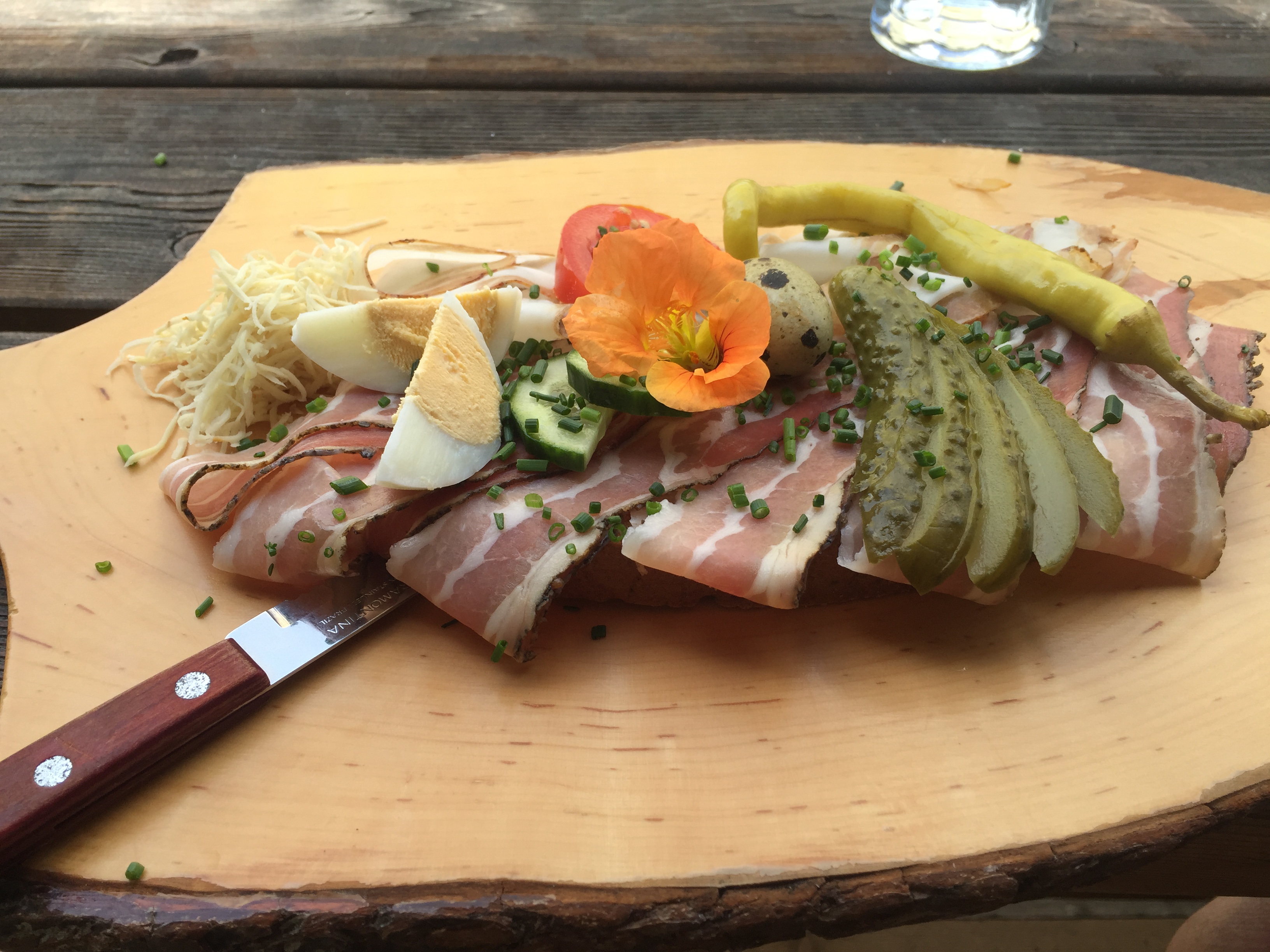 On the Hike up to Rittisberg Kathy was riding a bull on the Ochsenalm… so I think this “Brettljause” was well deserved…