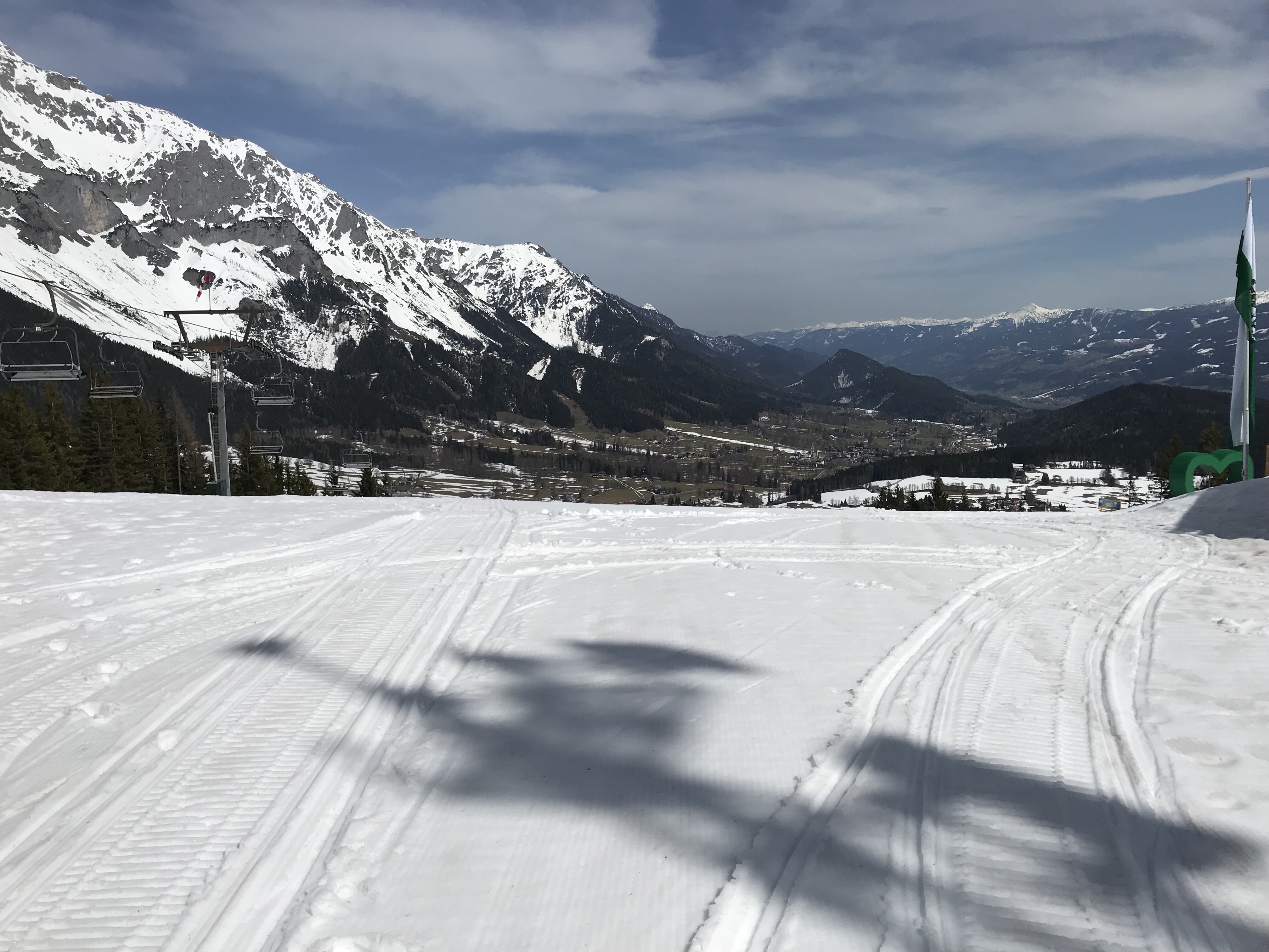 Since there was still a lot of energy in my tank, I decided to top it with a short backcountry skiing session. The greatest part of it: the downhill. Great snow and freshly groomed as well – even though the skiing resort Rittisberg was closed already. In addition to that the temperature was around 20 degrees celsius. So I could put on shorts and a t-shirt for the way up.