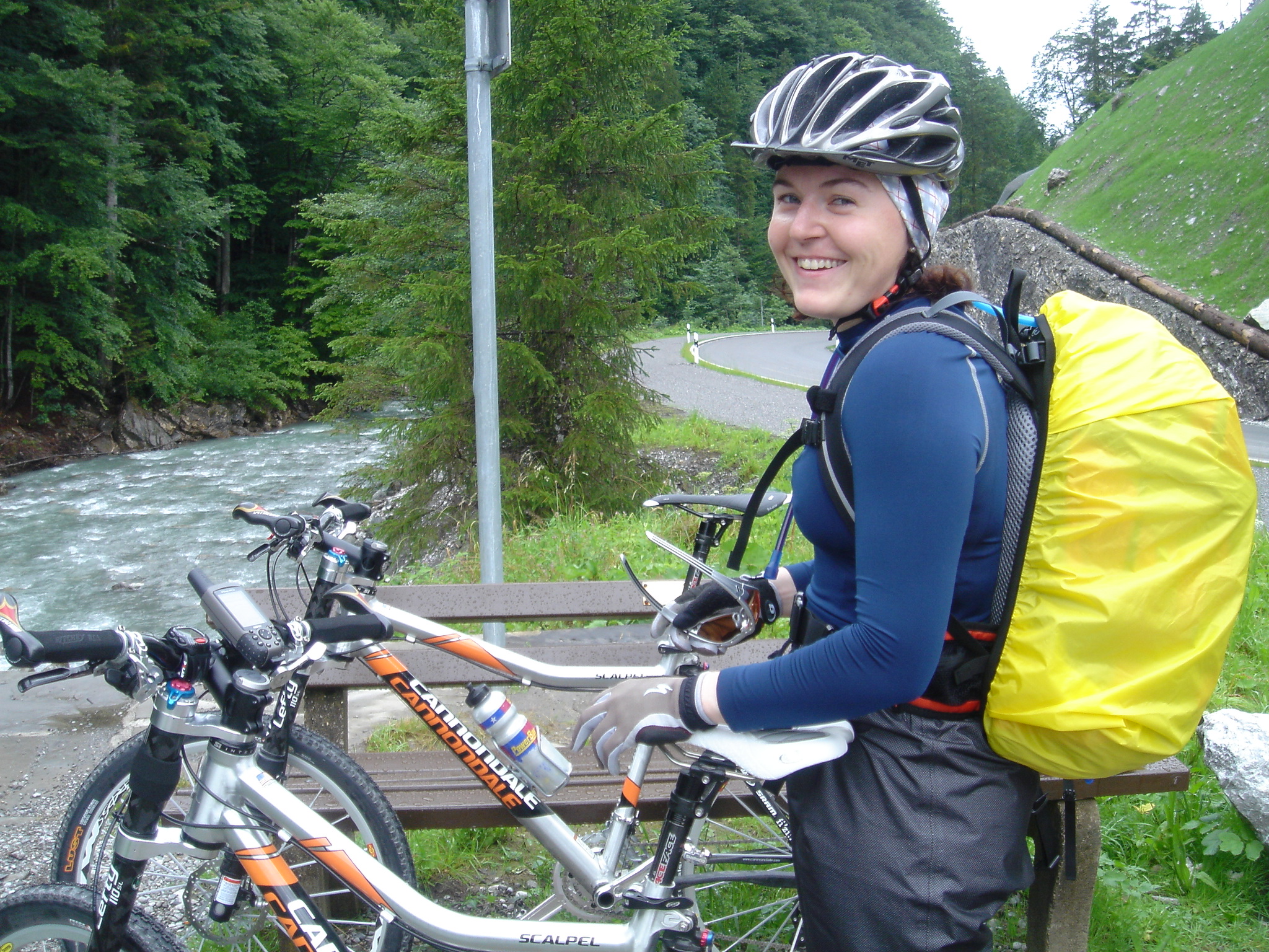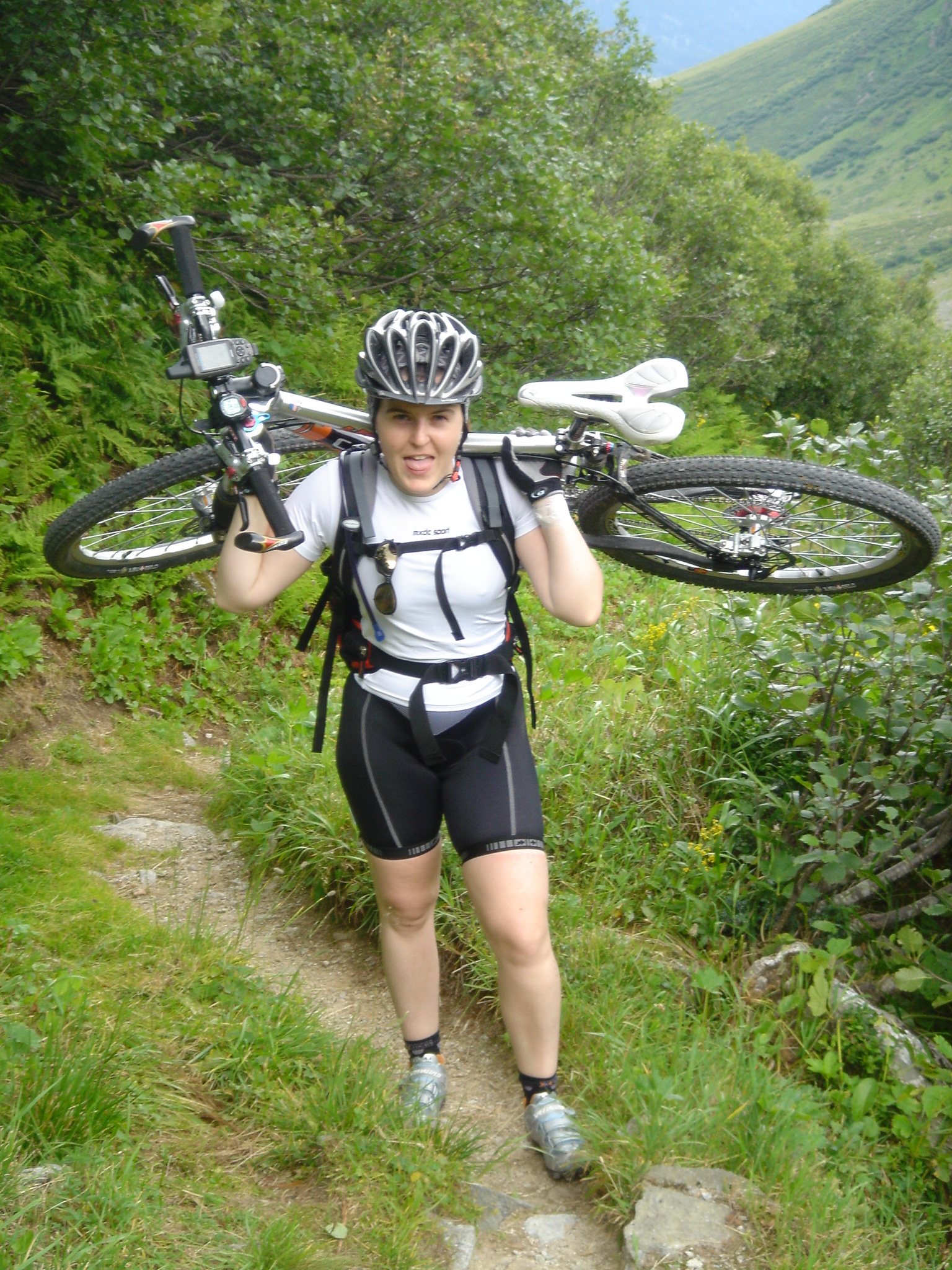 Now it was time to rock’n’roll. The morning rain made that the start oft he stage got a bit wet. However, we didn’t cycle too much before we had to get out of the settle to carry and push our bikes over the Schroffenpass – the first test for us and our fear for heights. After we survived this first tough ascent the rest of the stage was fantastic. When we came to Dalaas, our parents were already waiting with a beer for us and organized a place to wash our bikes before we drove to Katharina’s mum for the night.