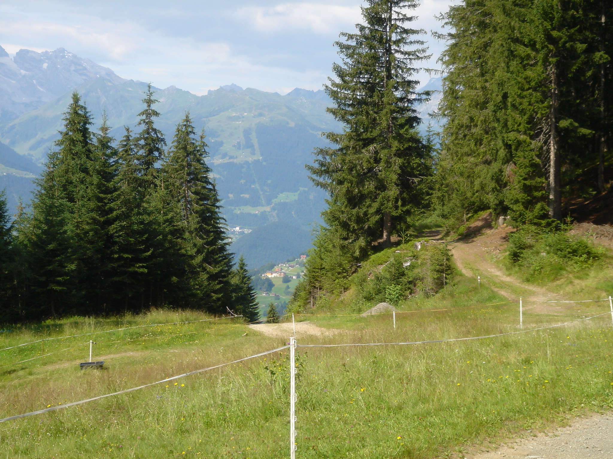 Already when we reached the Durannapass after several breaks because oft he thunderstorms, it became clear that we have no chance to reach the end oft he stage before dark. Therefore we were happy that we have our parents that were there to pick us up in Langwies. Before that we had a muddy but epic downhill – our bikes really have desserved the shower after this day.