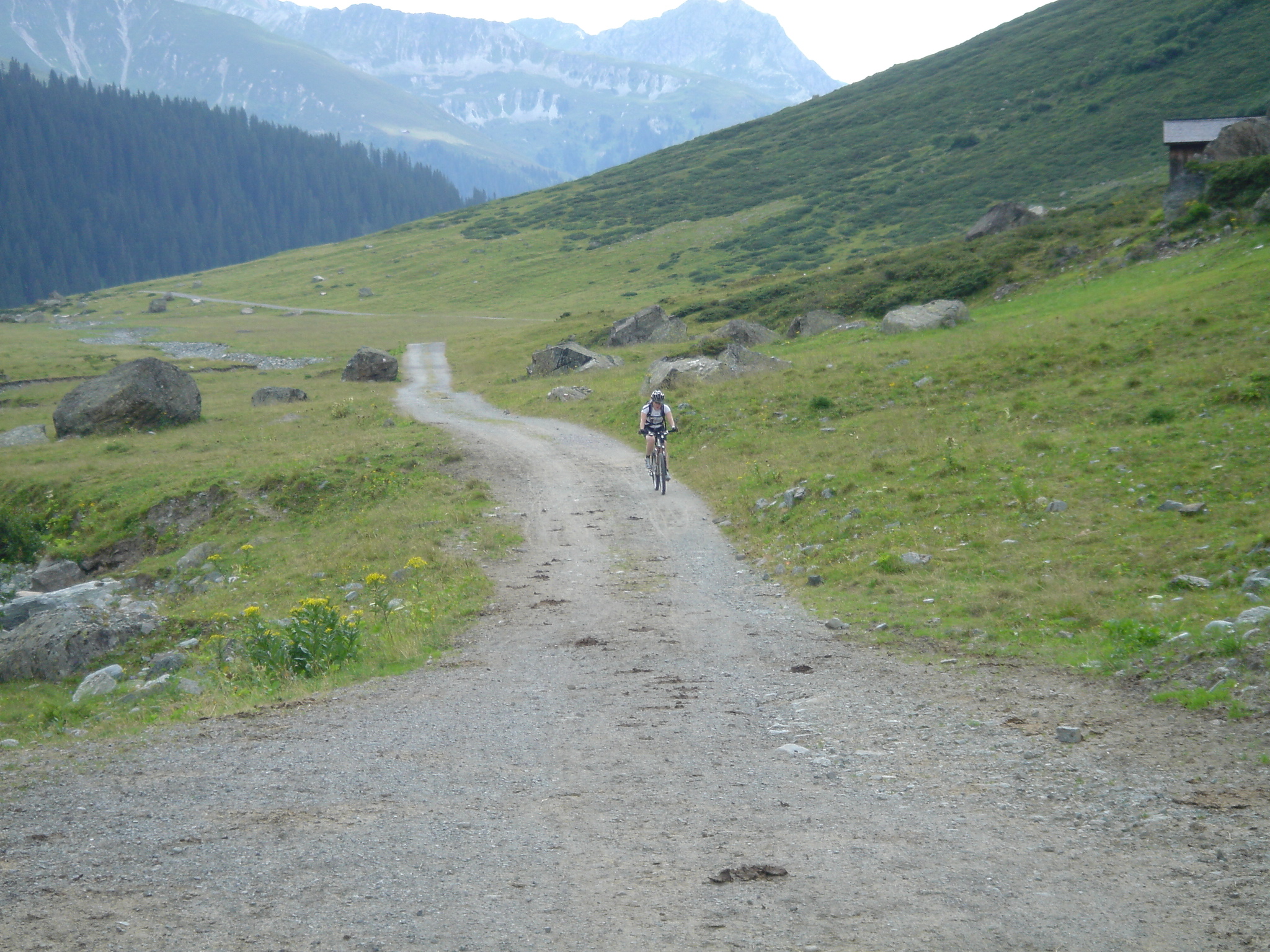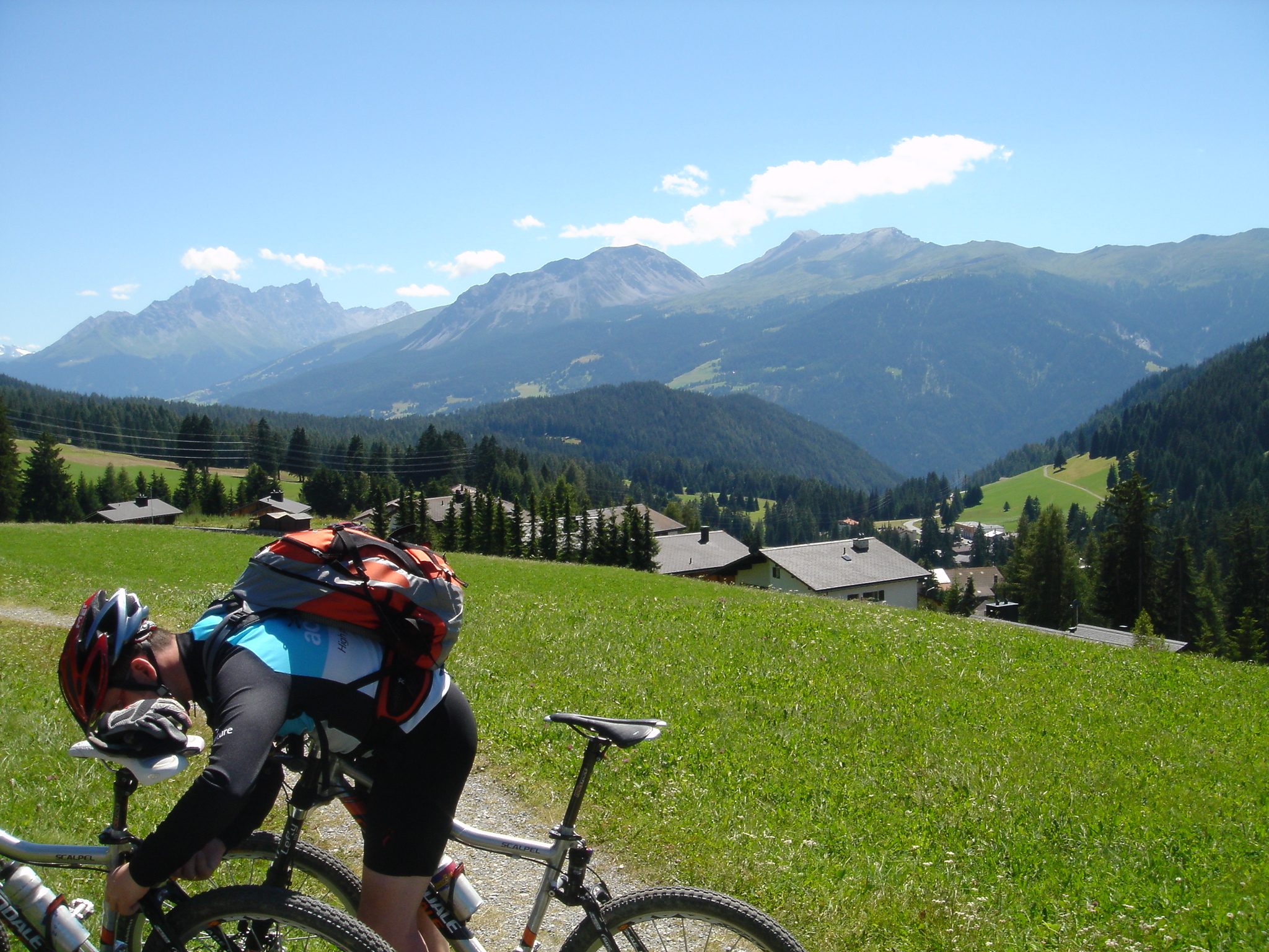 A dream day and an epic stage. The stage and the vista make up for the rainy day yesterday. First up from Arosa tot he Hörnli-Alp. A quite steep climb, especially afyer the Carmenna-Hütte is rewarded by an epic view from the top. After a short chitchat with our parents on the mountain top (weh ad a little race bike against cable car), we went on over Urdenfüggli to Lenzerheide.