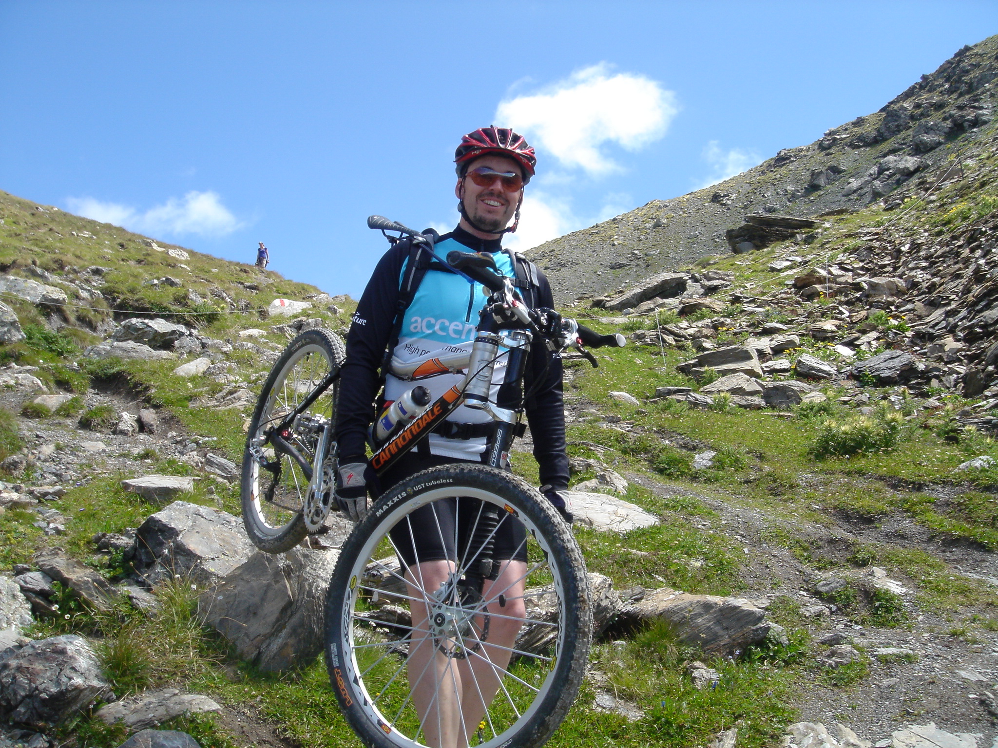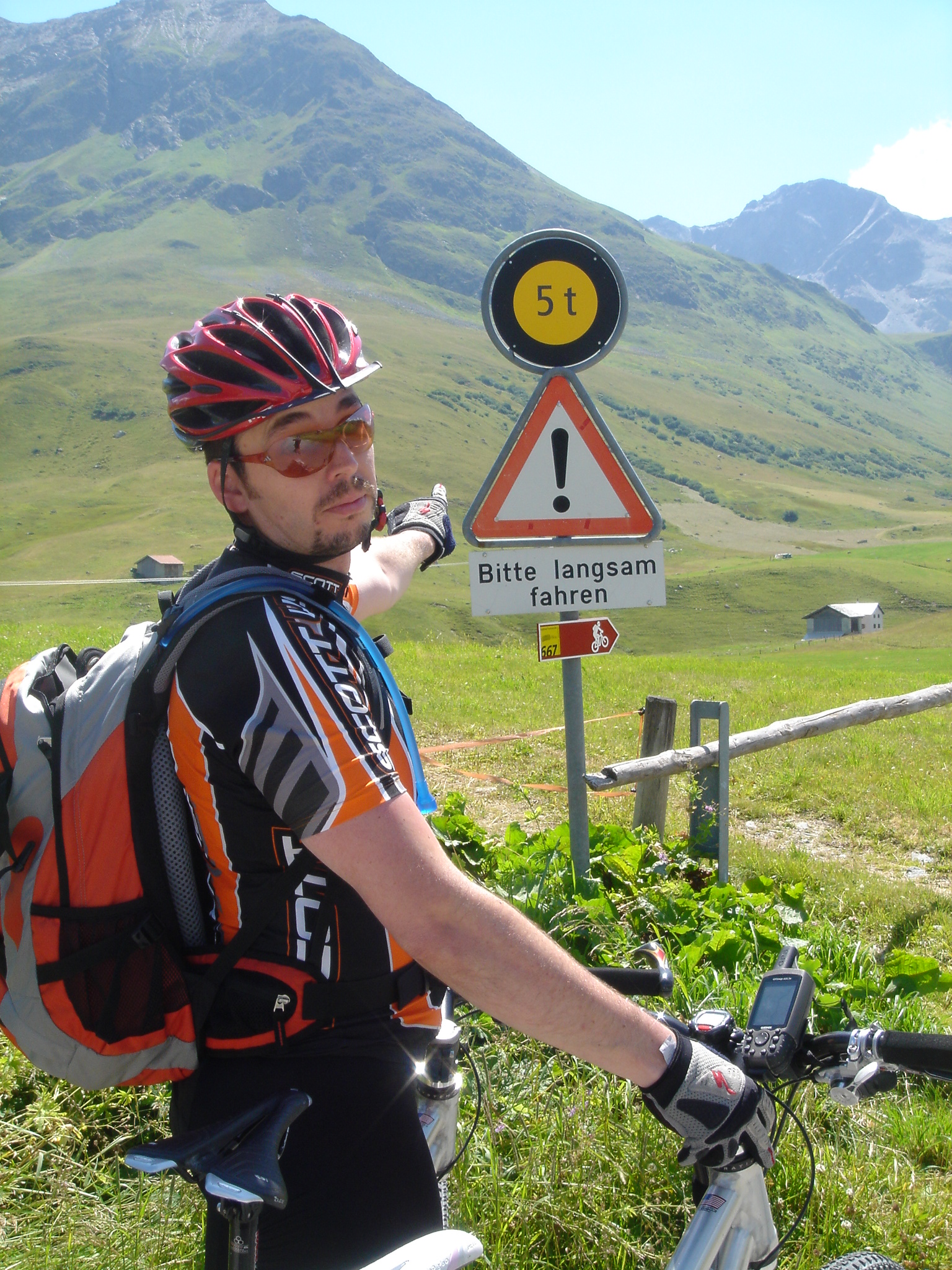 After the first stage with all its long passages of pushing and carying our bikes left its trace in our legs. But we decided to rather go for active regeneration and started relatively fast up Kristberg. Also the downhill to Schruns was n obig deal. But when we climbed up Gargellen we had to fight not only the ascent but also heat and sun. Especially Roland had a hard time and needed a stop for a toast in Gargellen. After that we managed ride up to Schlappinerjoch – again with a bit of bike carying.