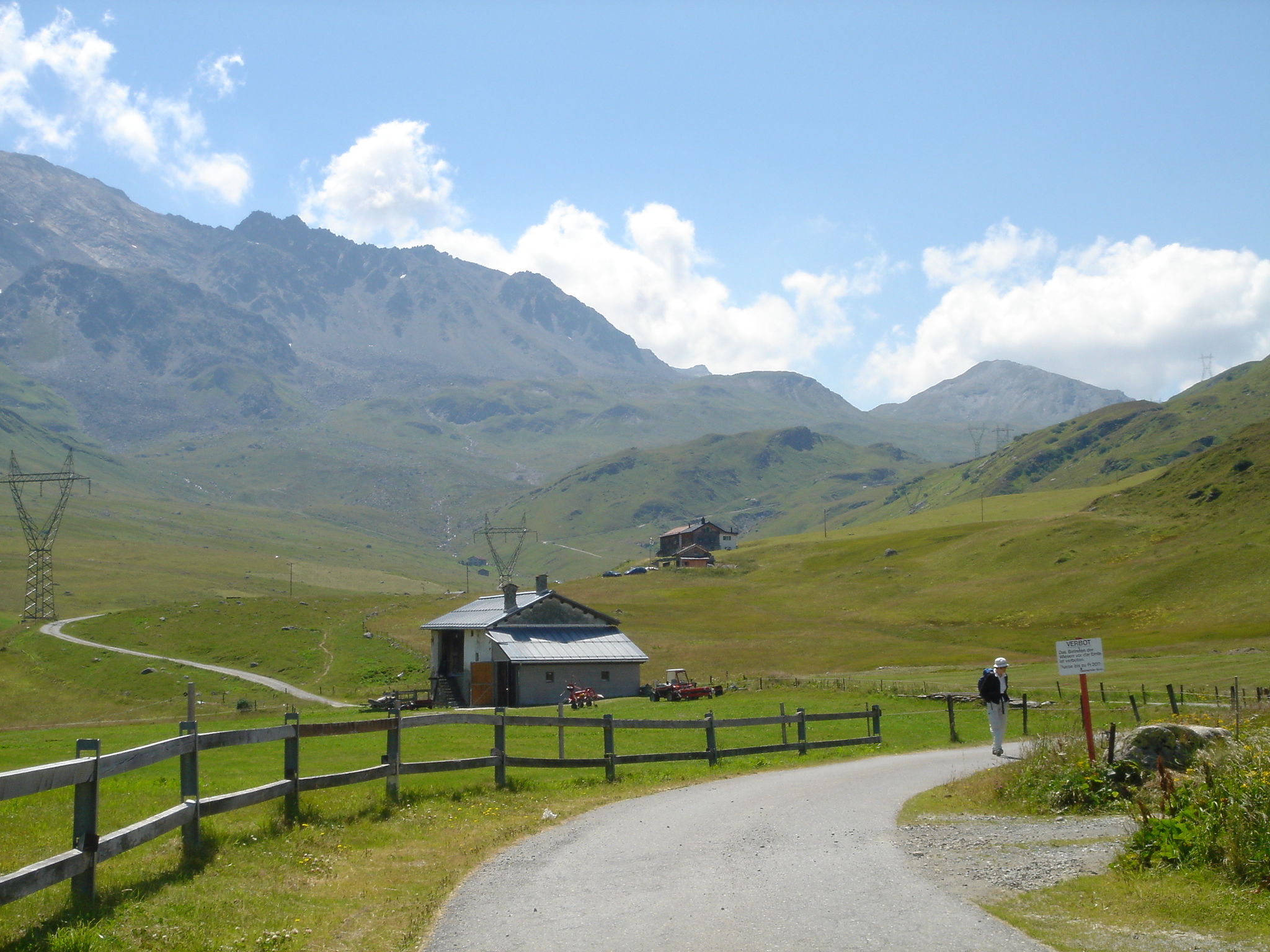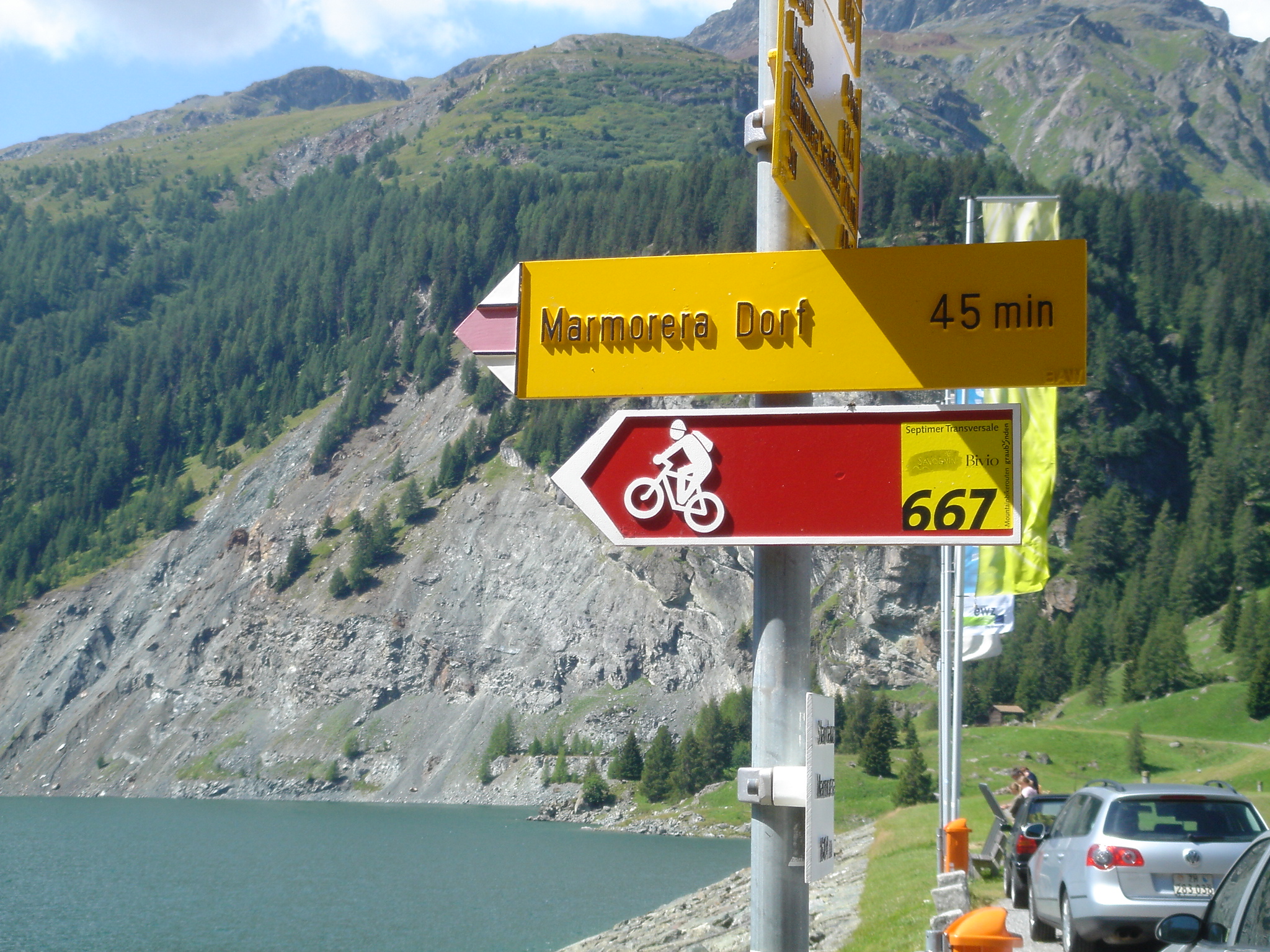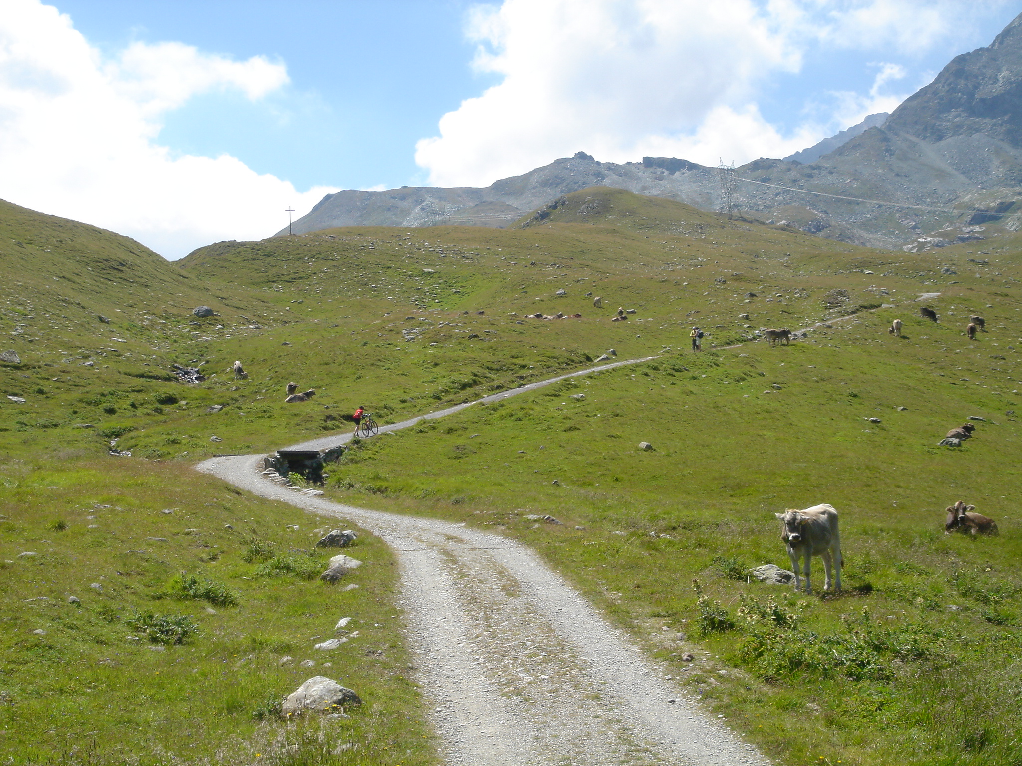 From Savognin we rode through some mosquito filled swamplands to Alpe Flix. Next we went down to the beautiful Lake Marmorera. After that we had to take the main road to Bivio with heavy traffic. Once we came to Bivio it went steep up to the Septimerpass, an ancient roman route to the south.