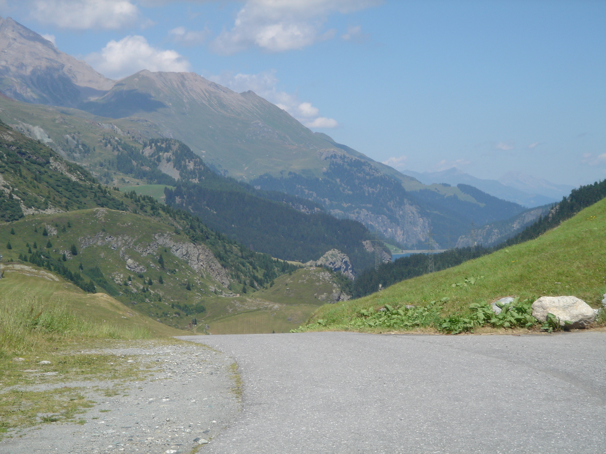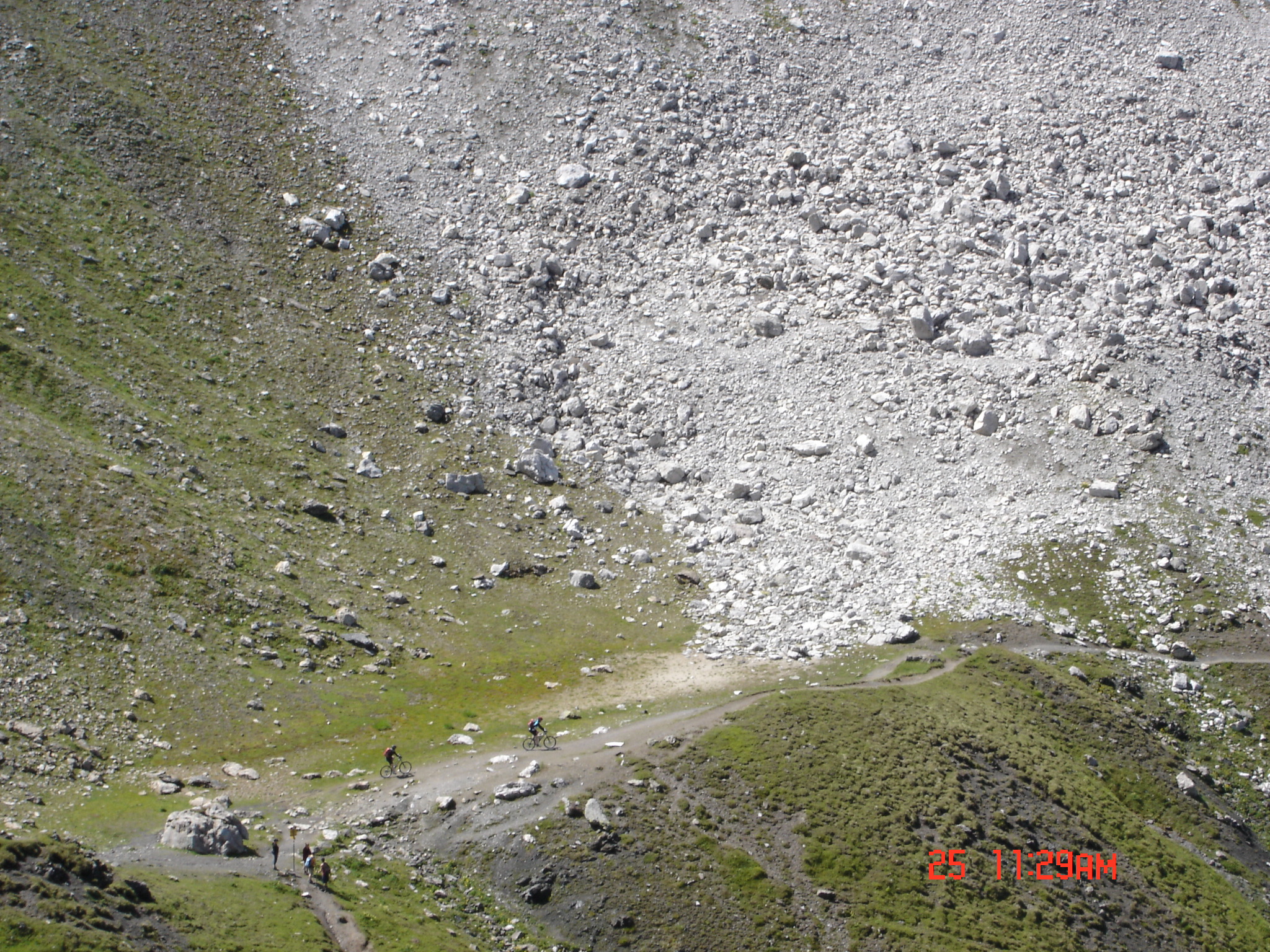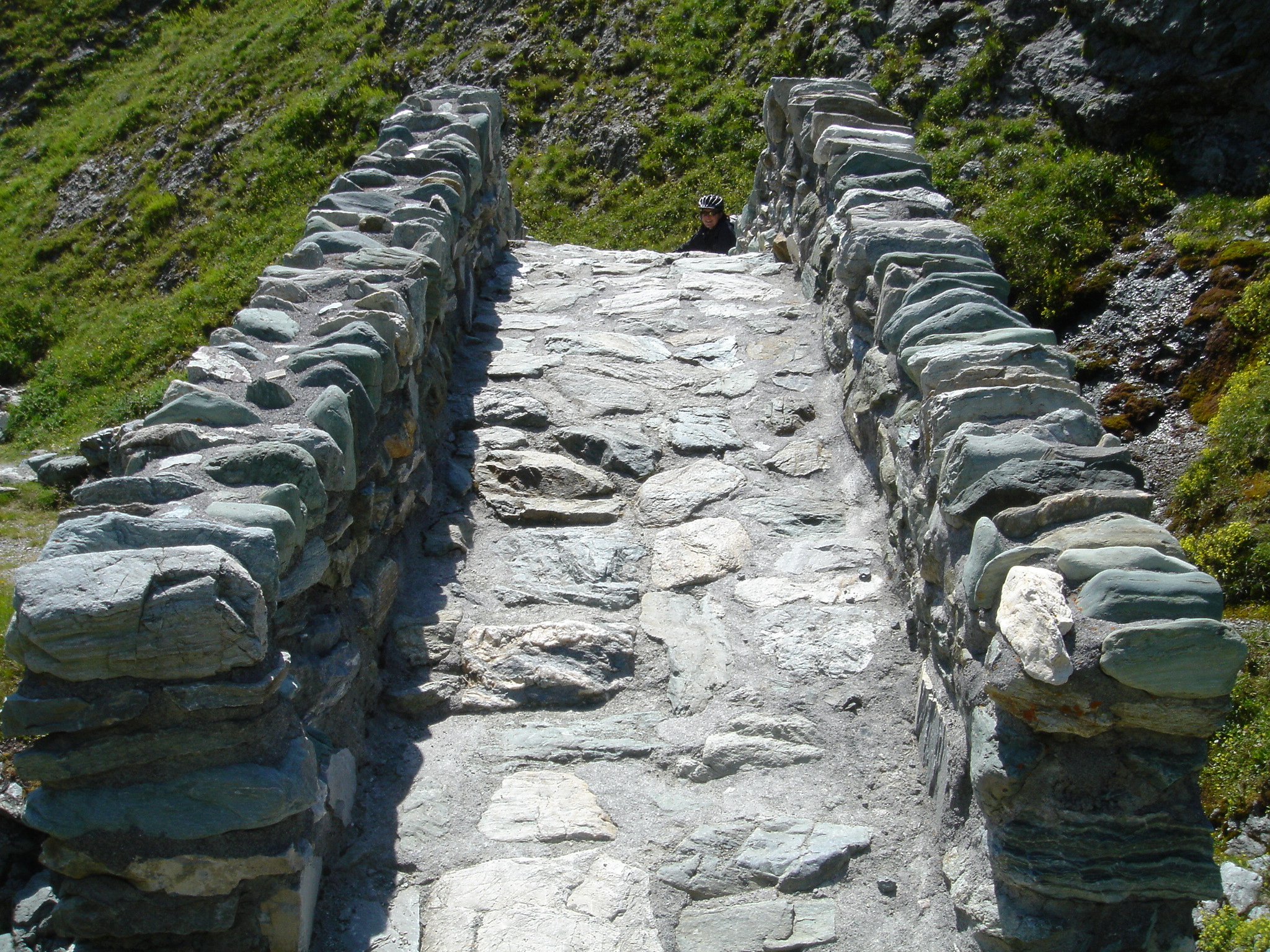 From Savognin we rode through some mosquito filled swamplands to Alpe Flix. Next we went down to the beautiful Lake Marmorera. After that we had to take the main road to Bivio with heavy traffic. Once we came to Bivio it went steep up to the Septimerpass, an ancient roman route to the south.